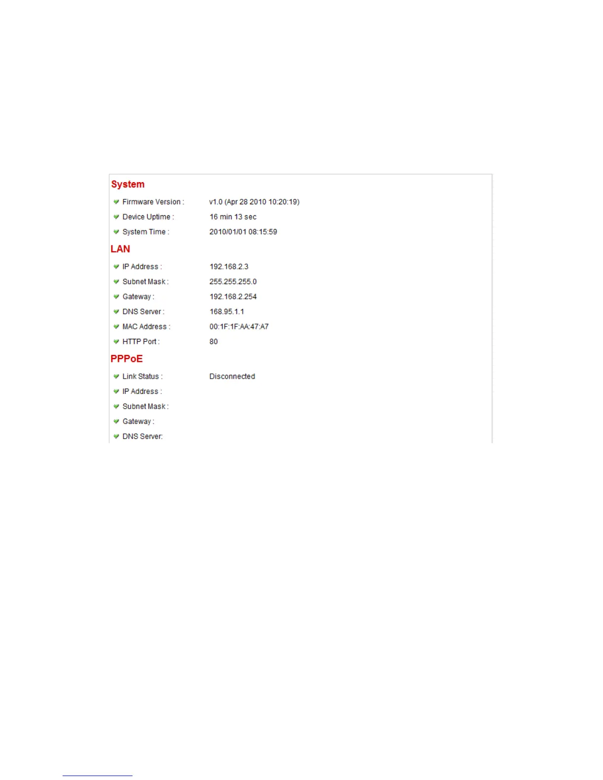 This menu provides all information about this IP camera, like firmware version,
