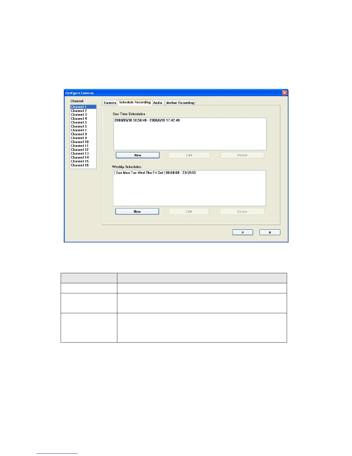 In this tab, you can setup scheduled video recording, so you can record the
