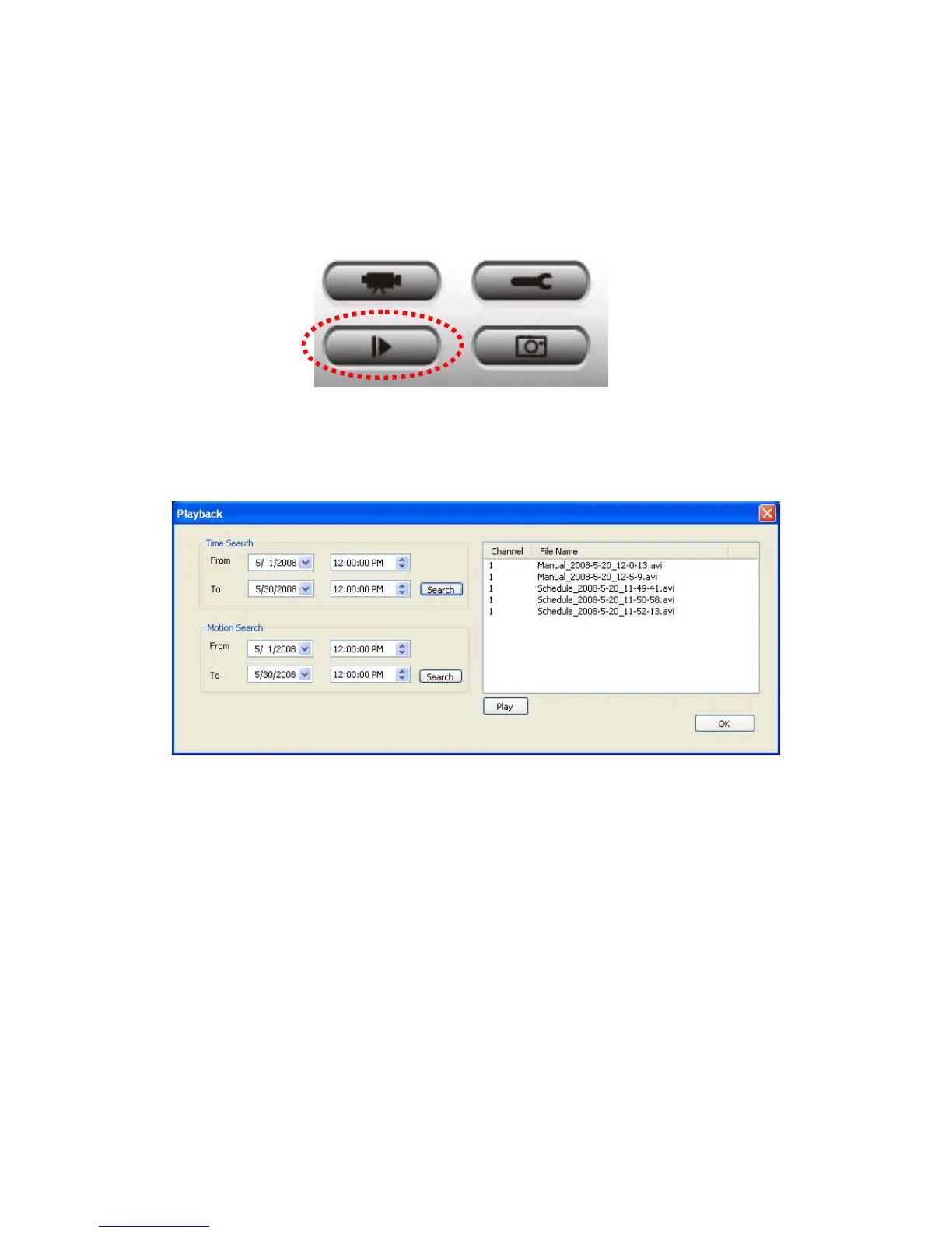 search, and then click ‘Search’ button (of ‘Time Search’ of ‘Motion’ Search’). All