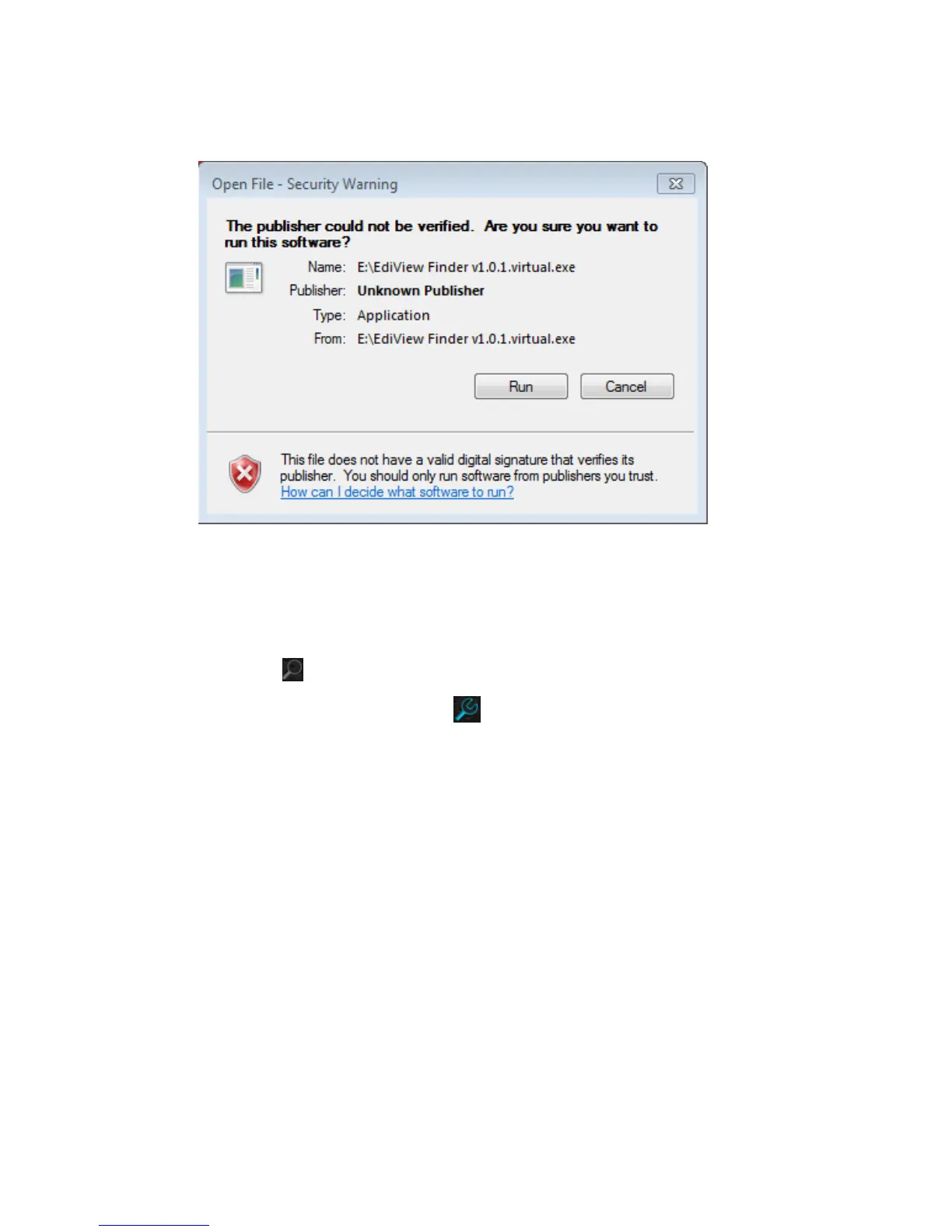 1. Double-click Ediview finder installer, and click ‘Run’ when you’re prompted: