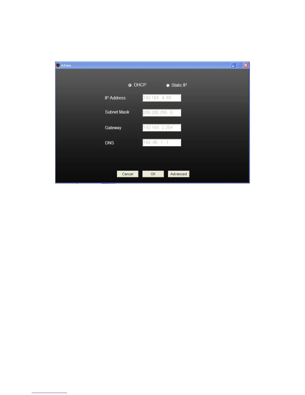 ‘DHCP’ to set the camera to obtain an IP address from DHCP server on local