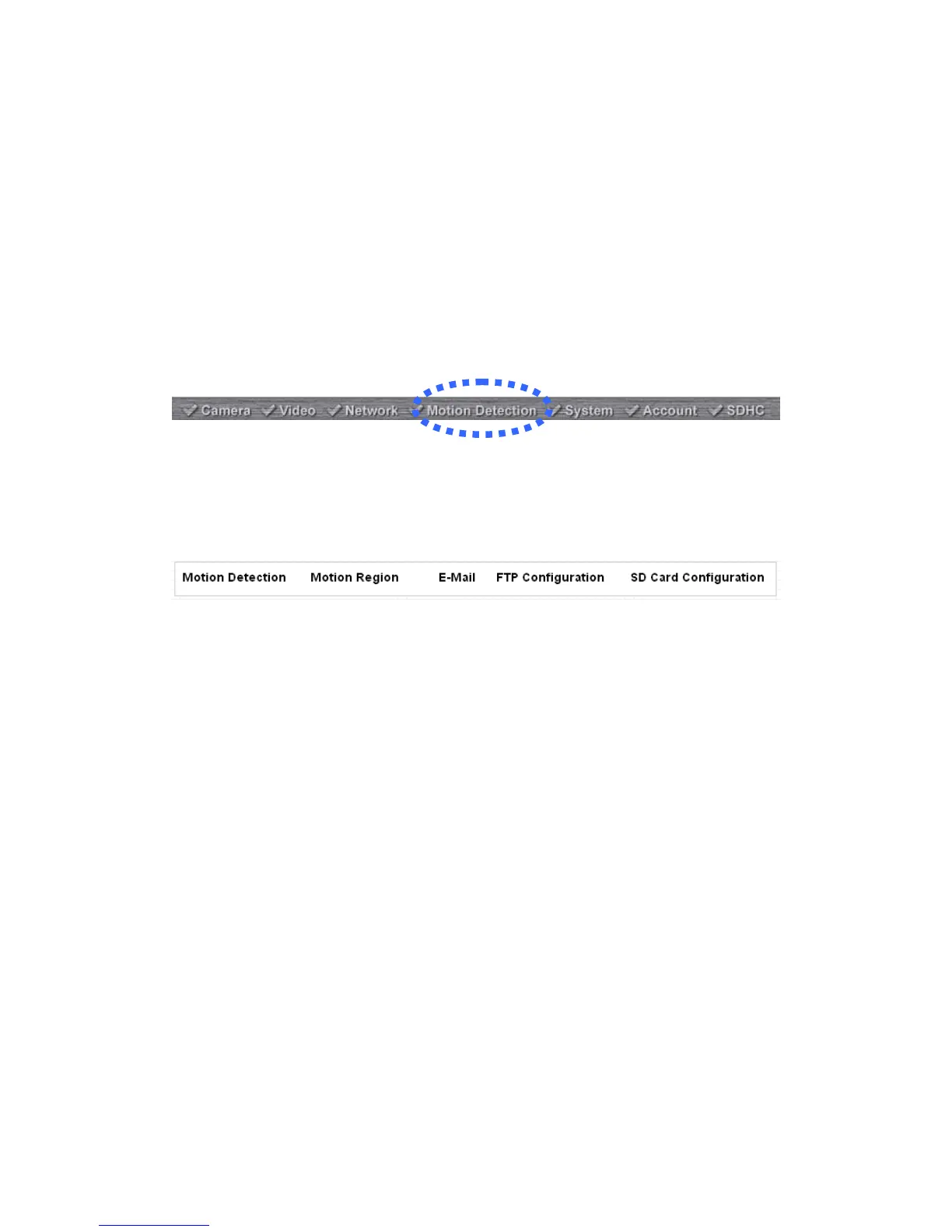 To use motion detection, click the following link from the top of menu: