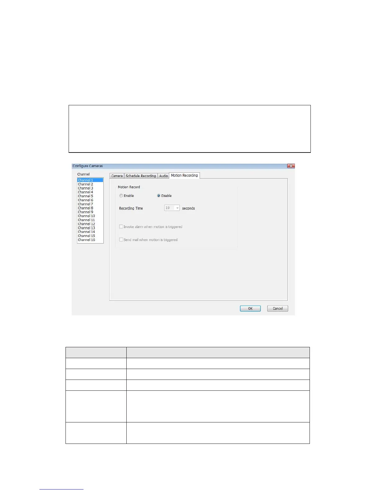 Enable Enable motion record function.