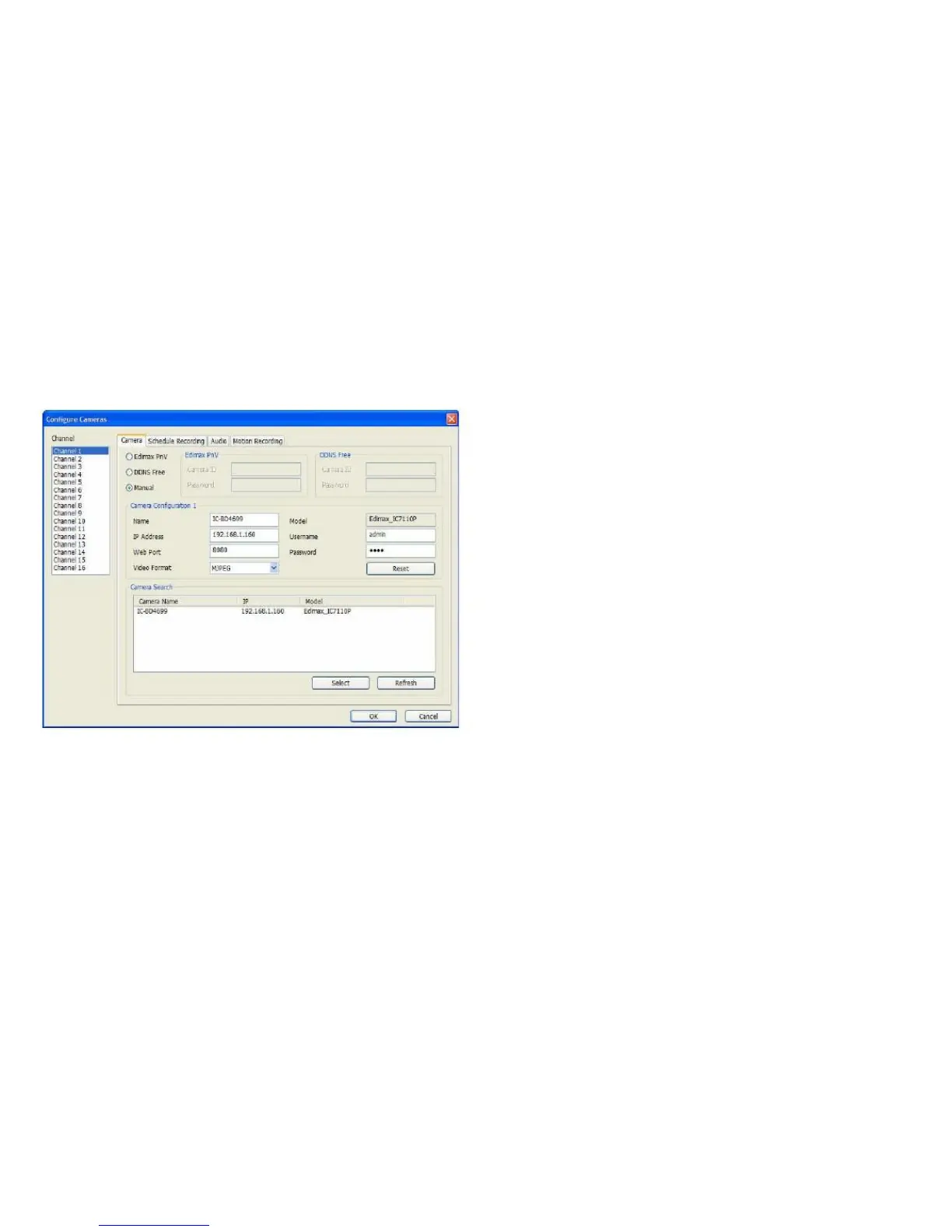 of the selected camera), enter the following: