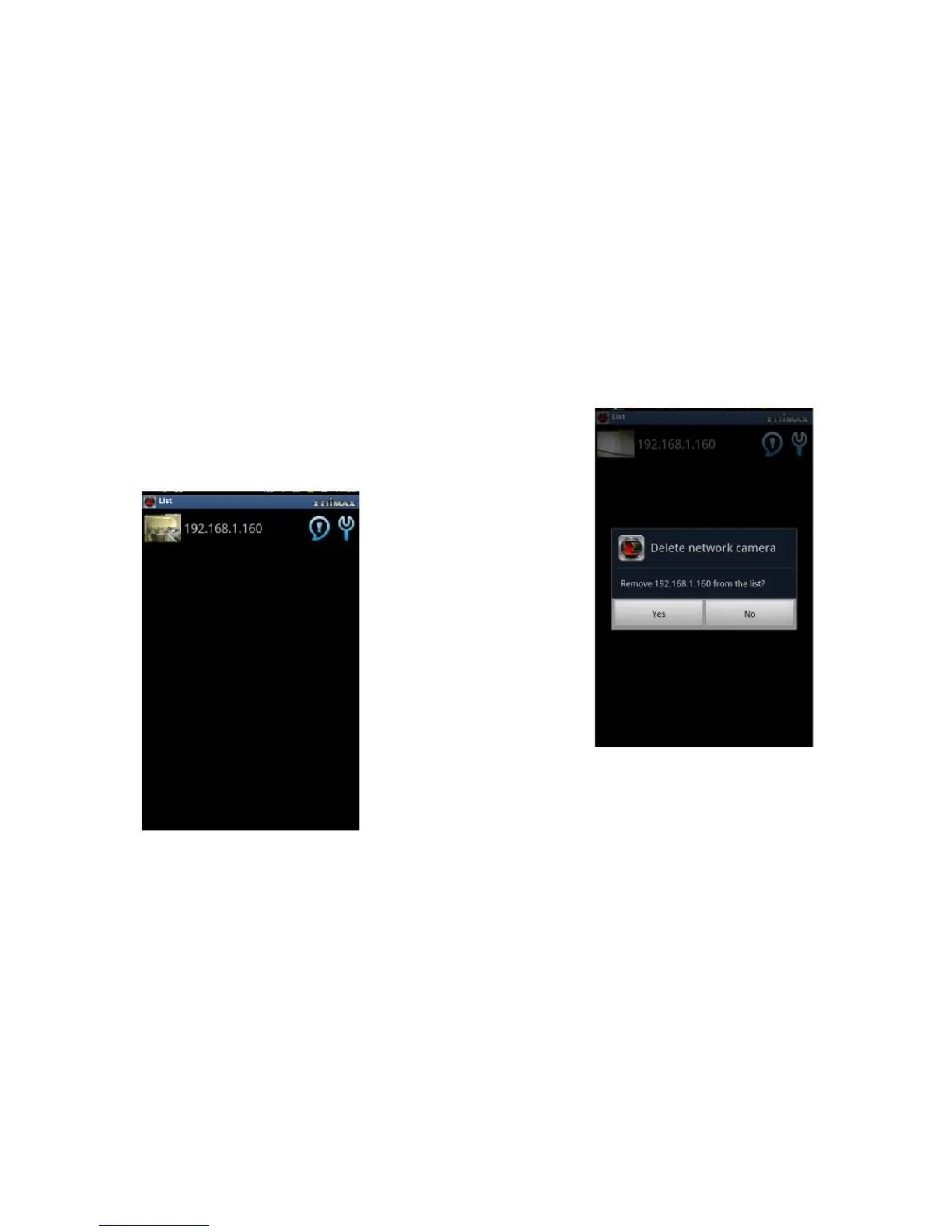 3. Tap Yes to remove the network camera from the list.