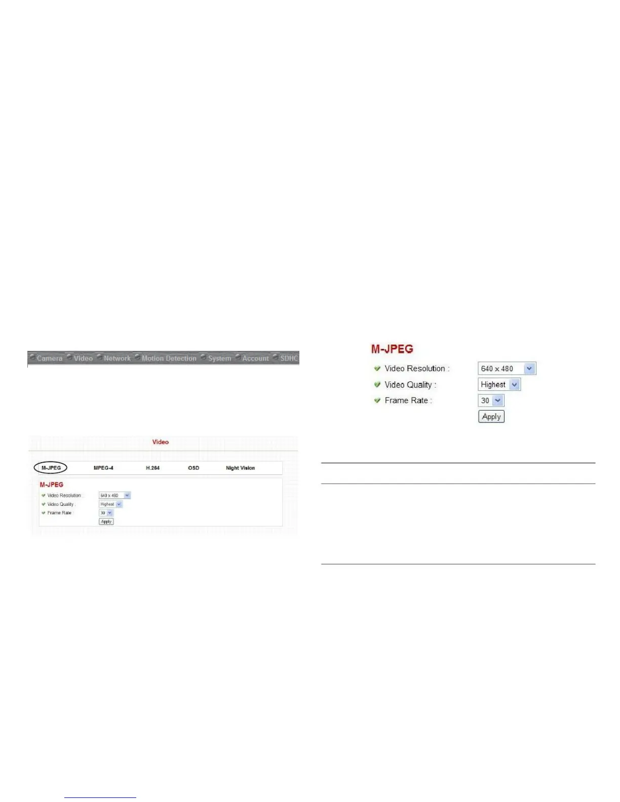on the M-JPEG configuration screen.
