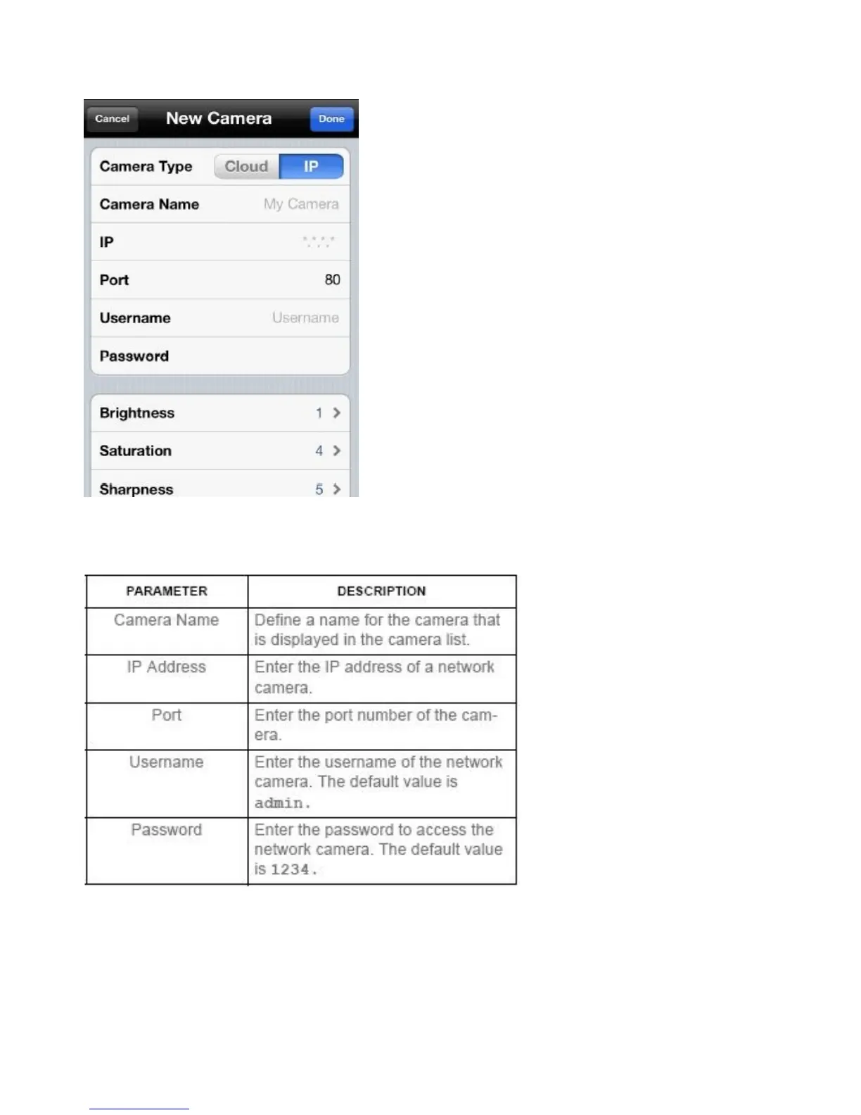 Tap Done to add the network camera to the camera list. Tap Cancel to discard