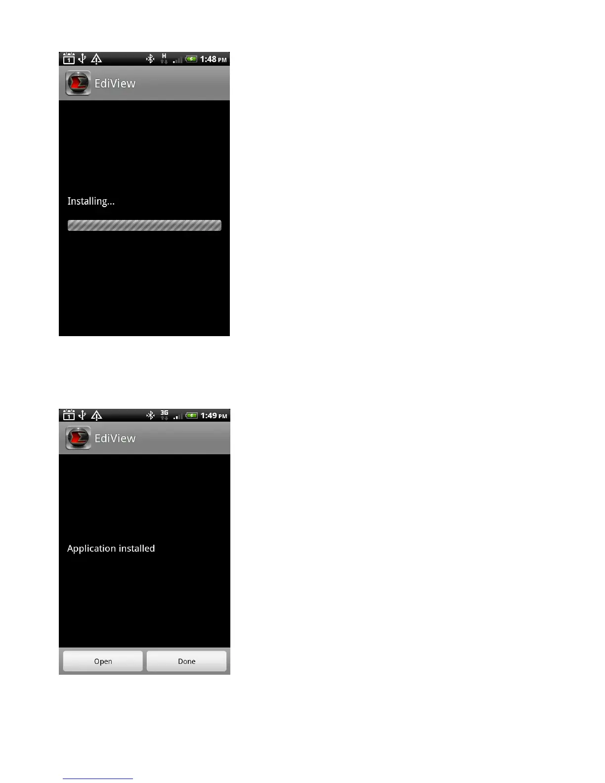 (7) Tap Open to launch the EdiView application or tap Done to close the