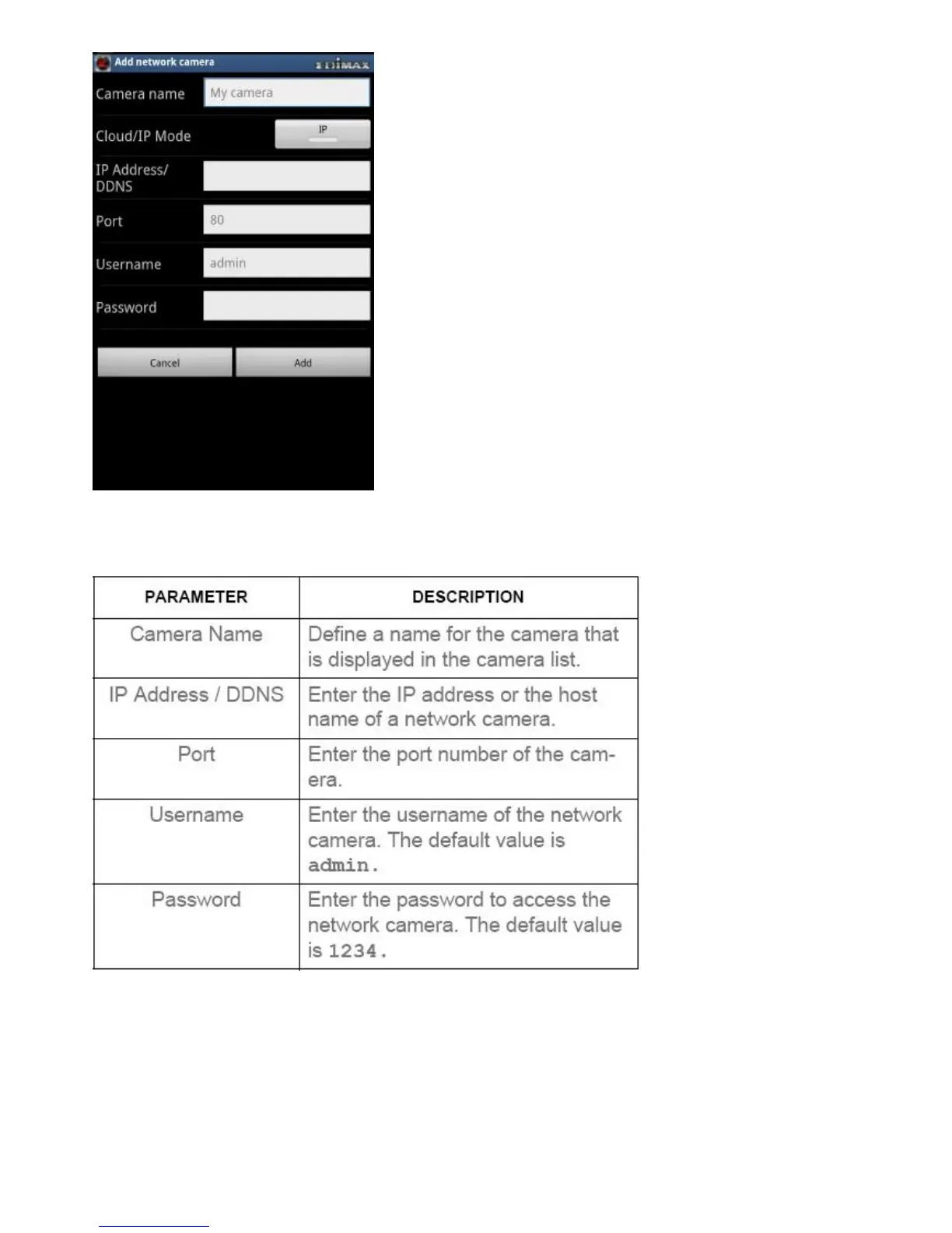 Tap Add to add the camera to the list. Tap Cancel to discard the changes.