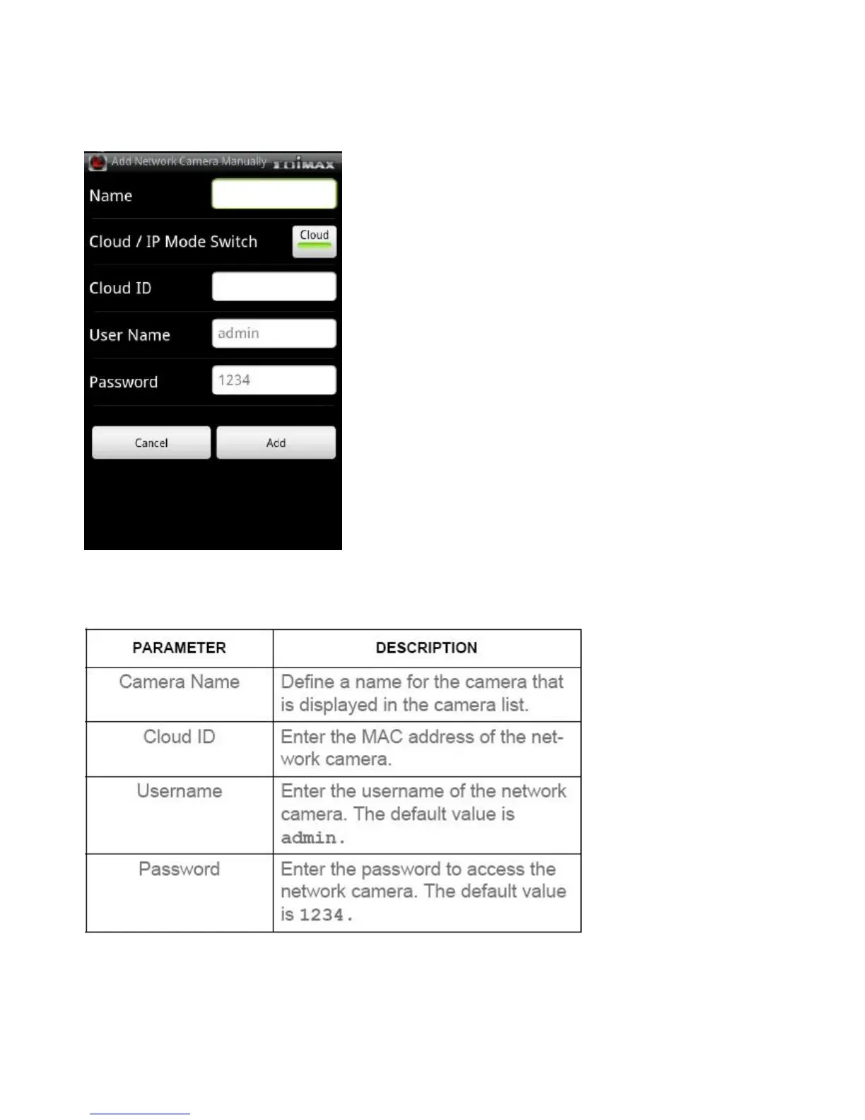 Tap Add to add the camera to the list. Tap Cancel to discard the changes.
