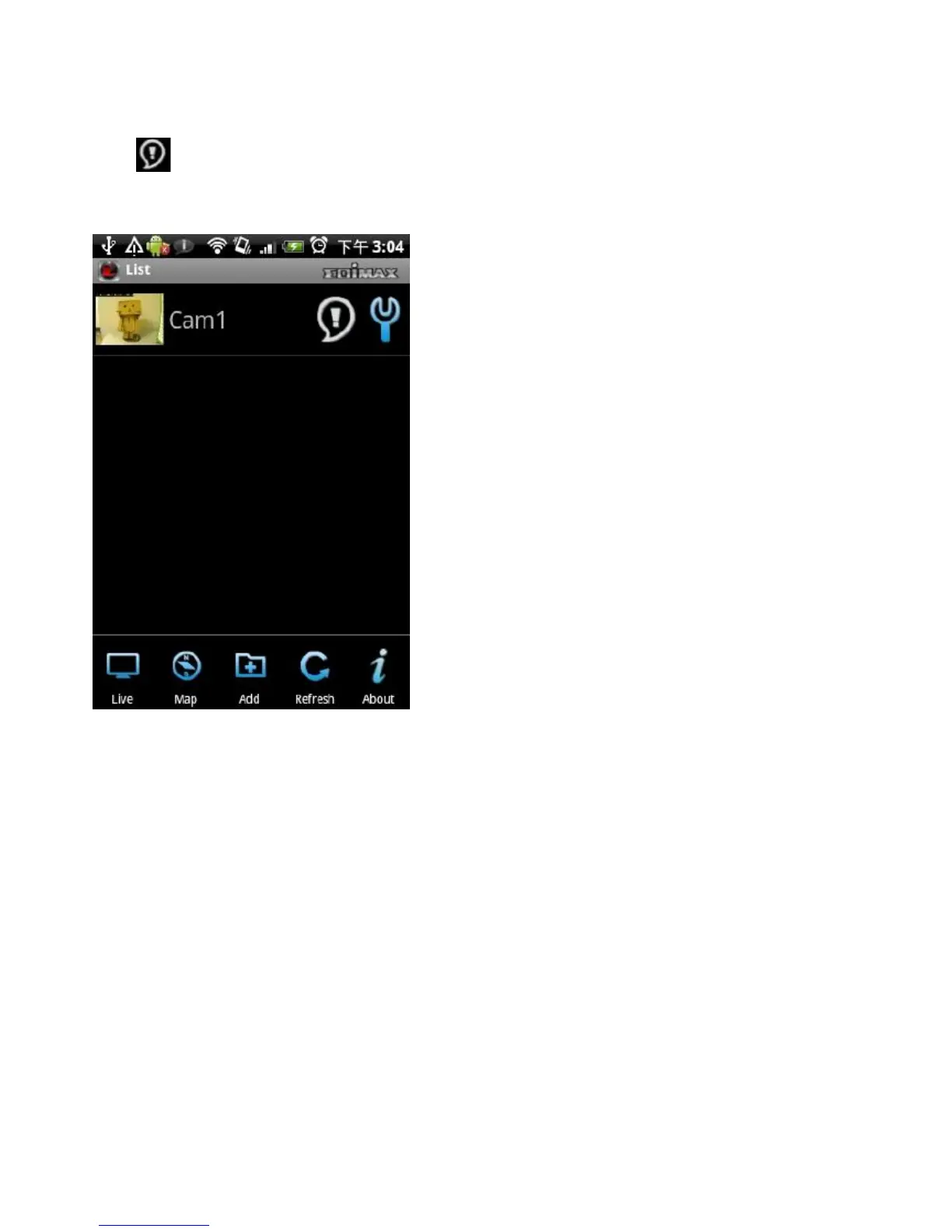 the icon appears in the network camera list. Tap the icon to see the list of