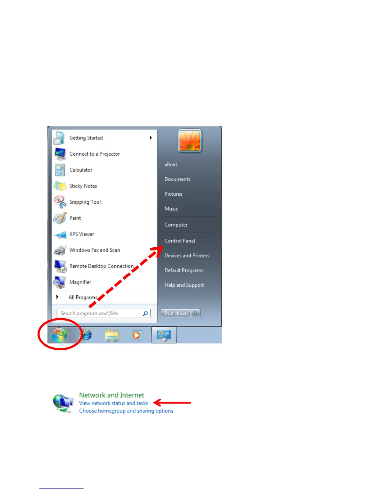 2. Click ‘View network status and tasks’ under ‘Network and Internet’