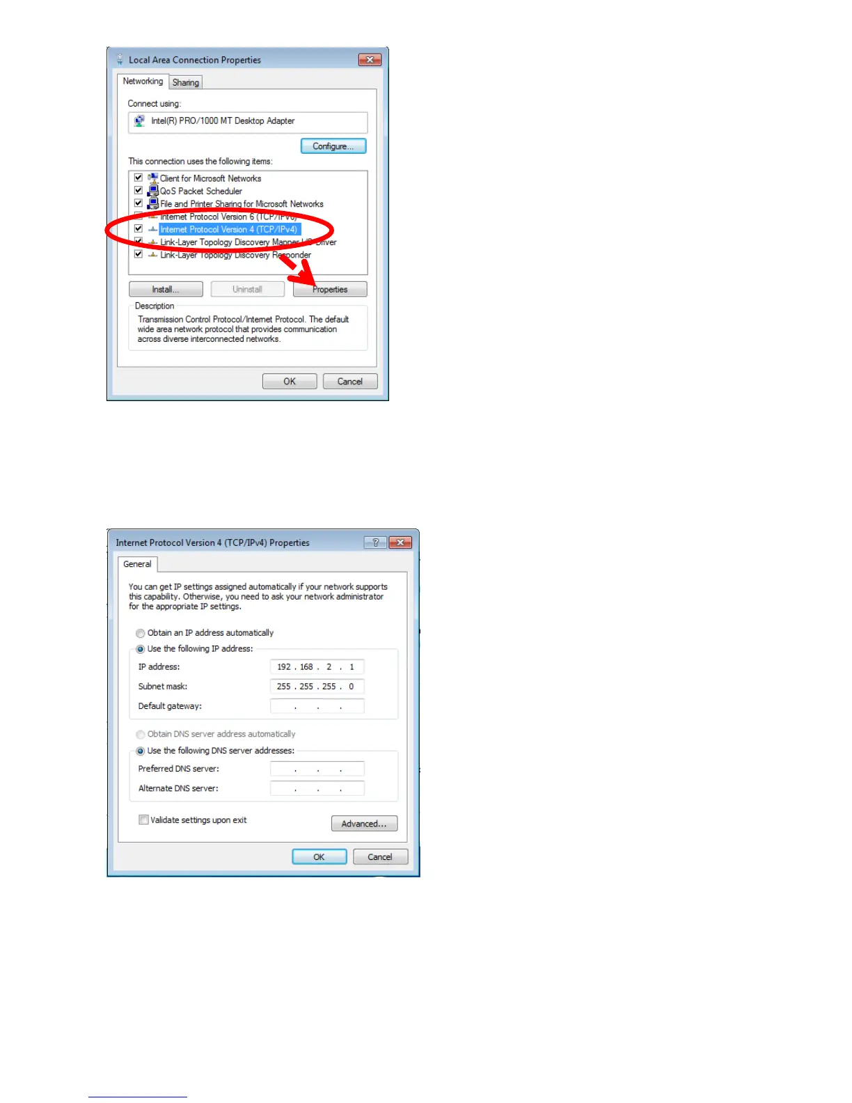 address and 255.255.255.0 in Subnet mask, as shown below. Click OK