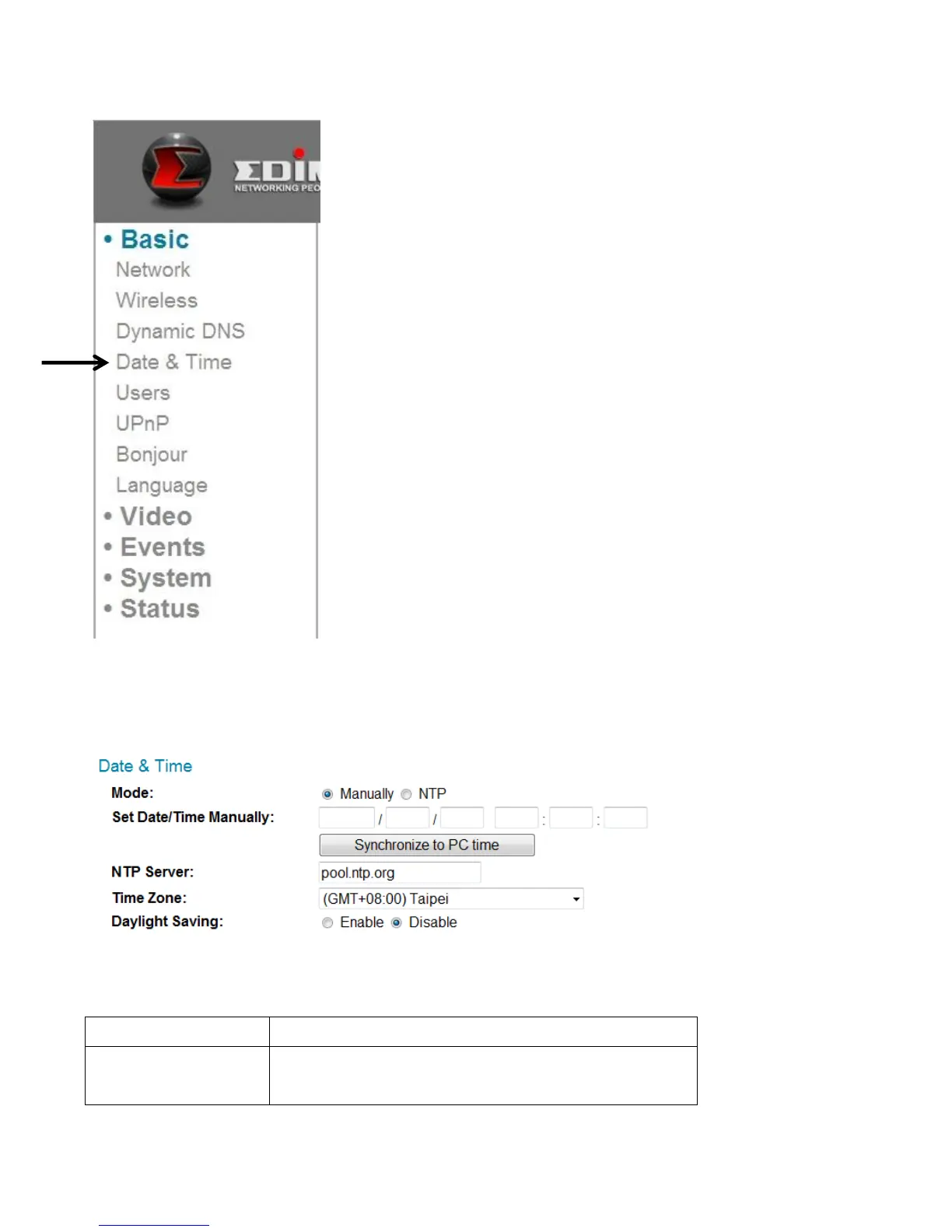 Edimax IC-3115W - Date & Time