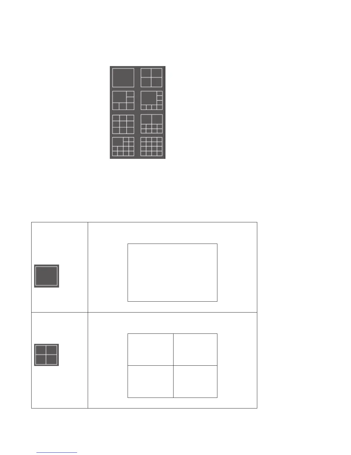 Every layout displays a different number of cameras in different arrangements,