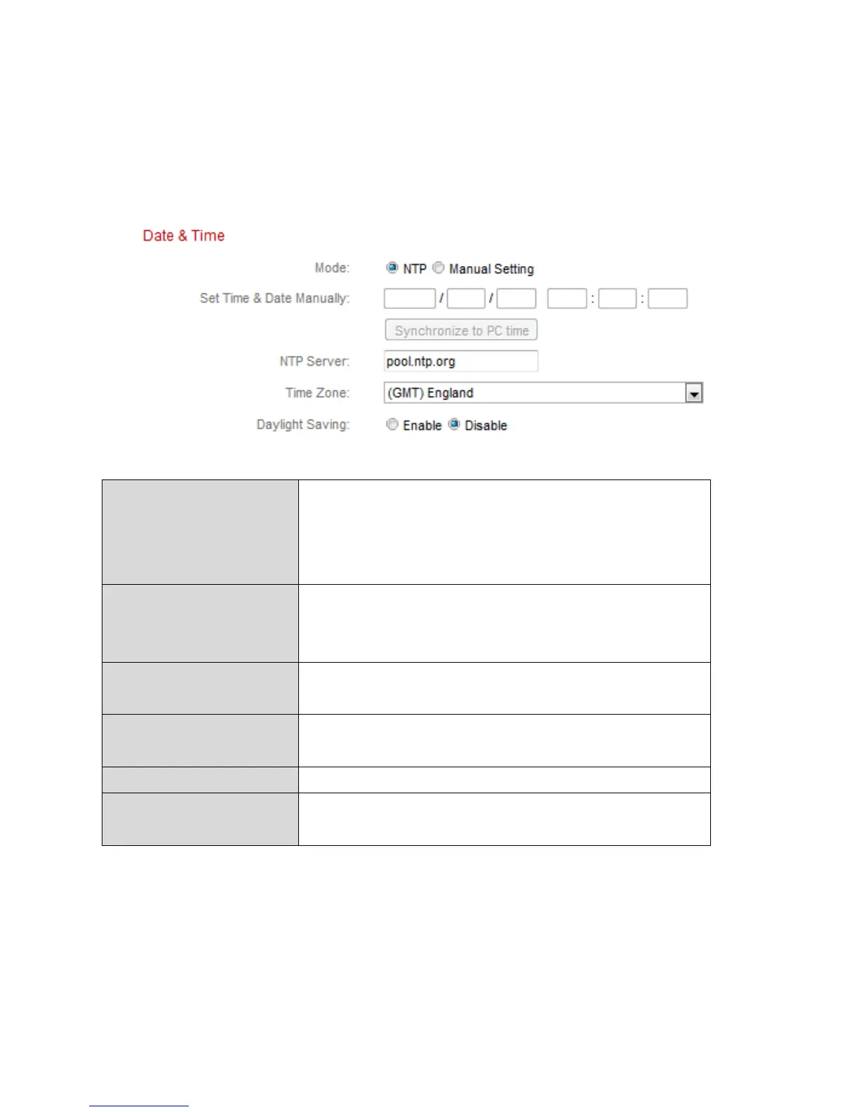 Select ”NTP” or “Manual Setting”. NTP