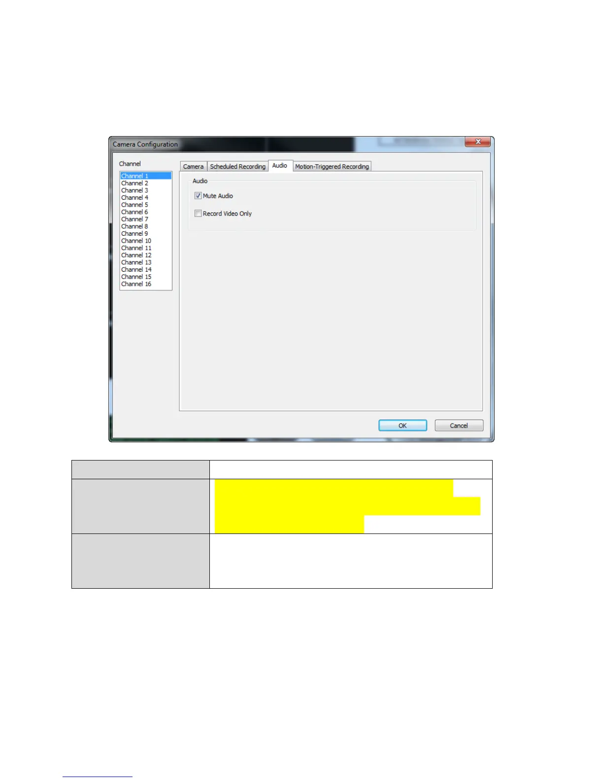 For cameras that support audio, you can use this tab to decide if you wish to