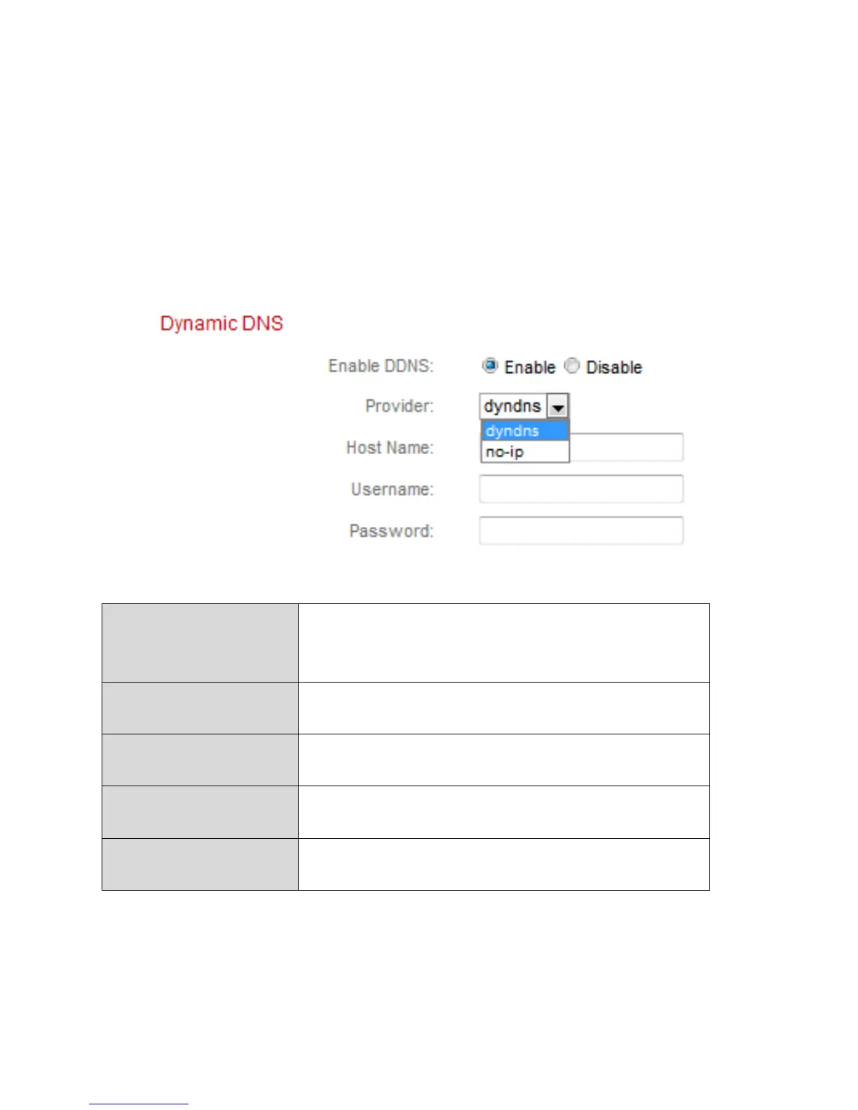 Select “Enable” to enable DDNS functionality,