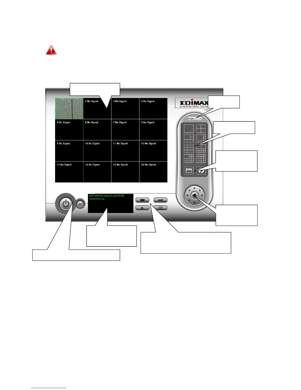 The main screen of the 16 channel viewer is described below:
