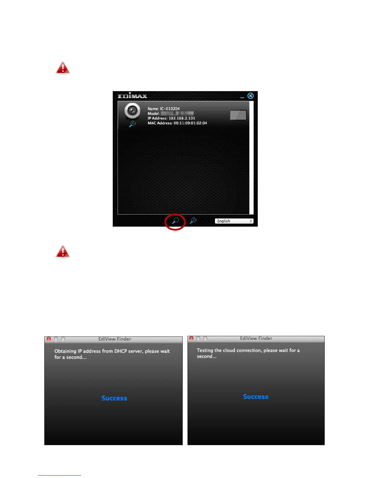camera to obtain an IP address and test the cloud connection. EdiView