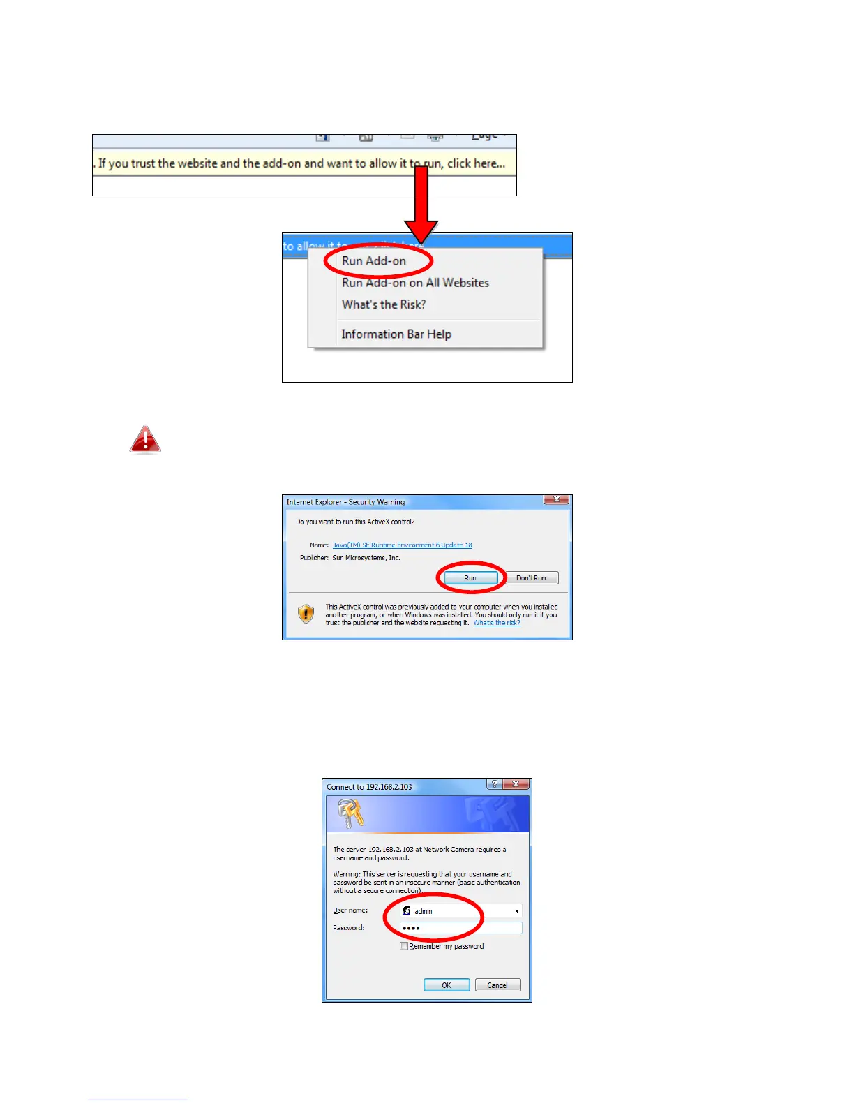 3. Enter the username and password for your network camera (default