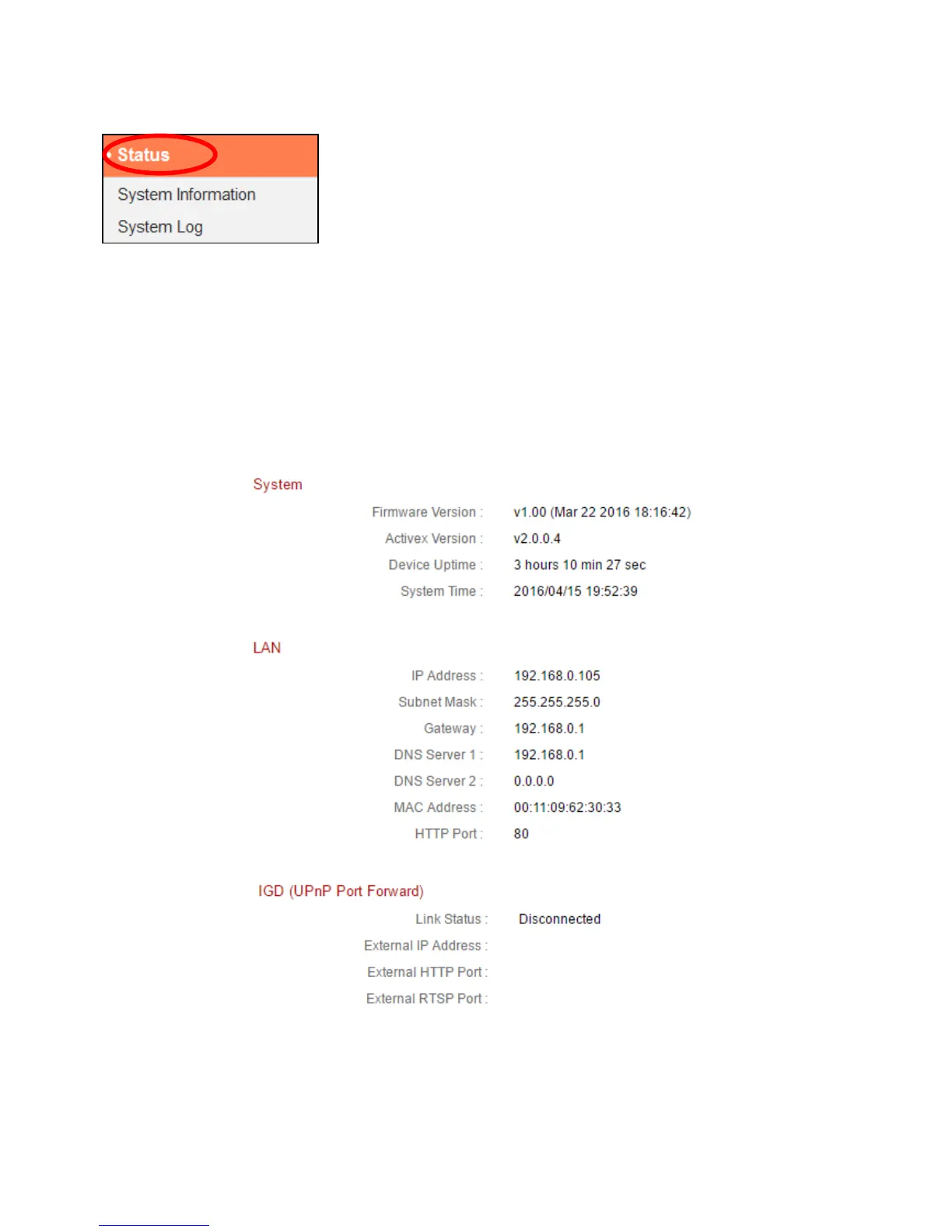 about the status of the network camera. This