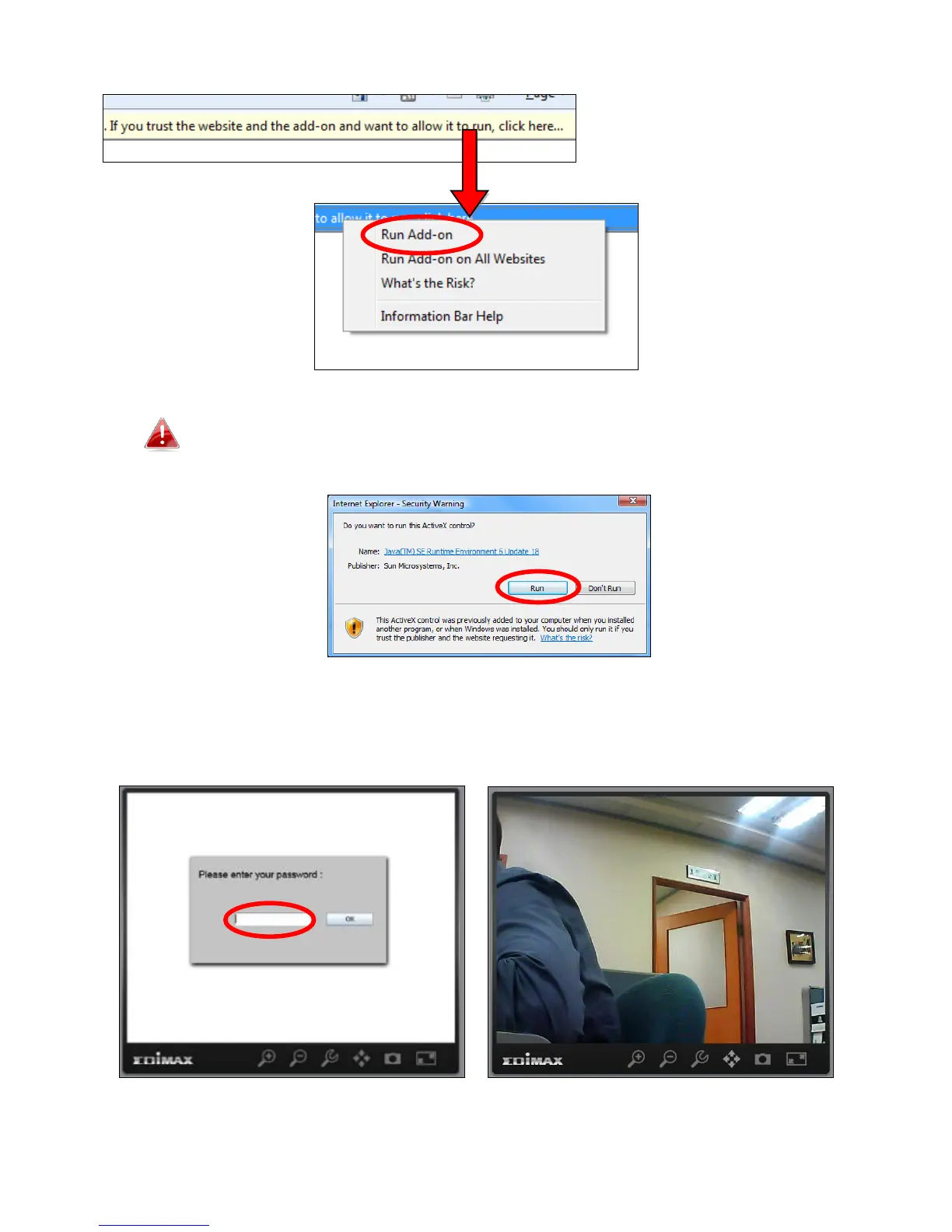 4. Enter your camera’s password (default password: 1234) and click “OK” to
