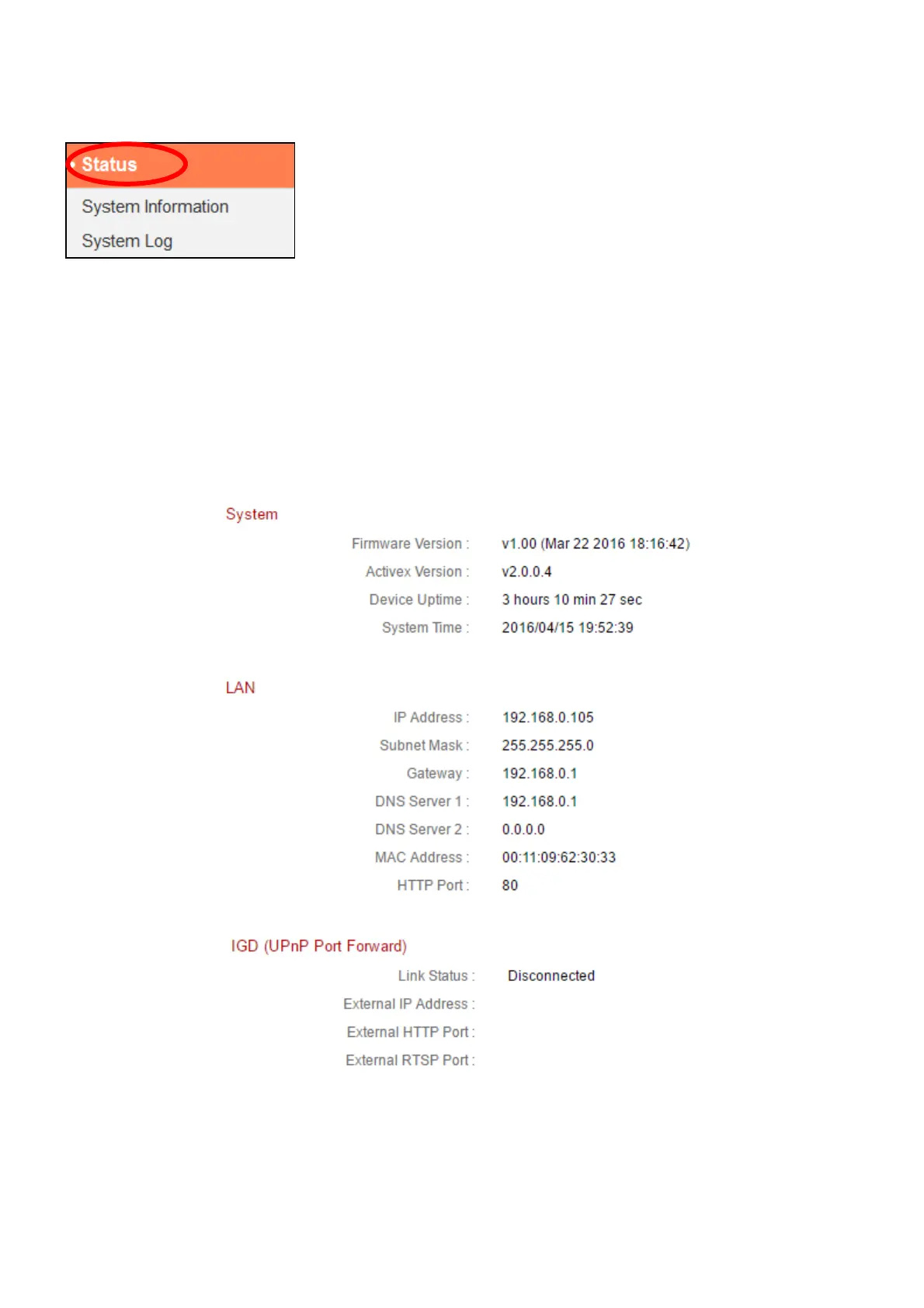 about the status of the network camera. This