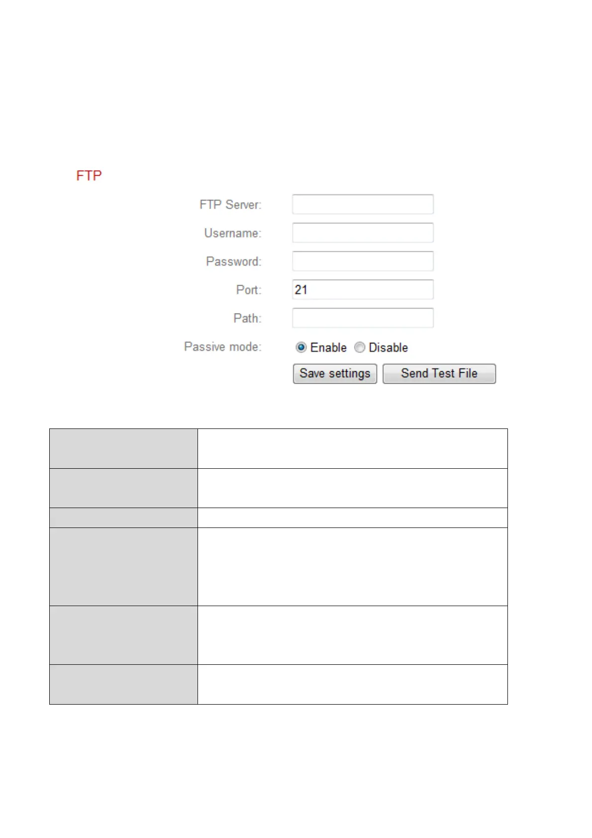 FTP server. This function must be enabled in “Motion Detection” or “Sound