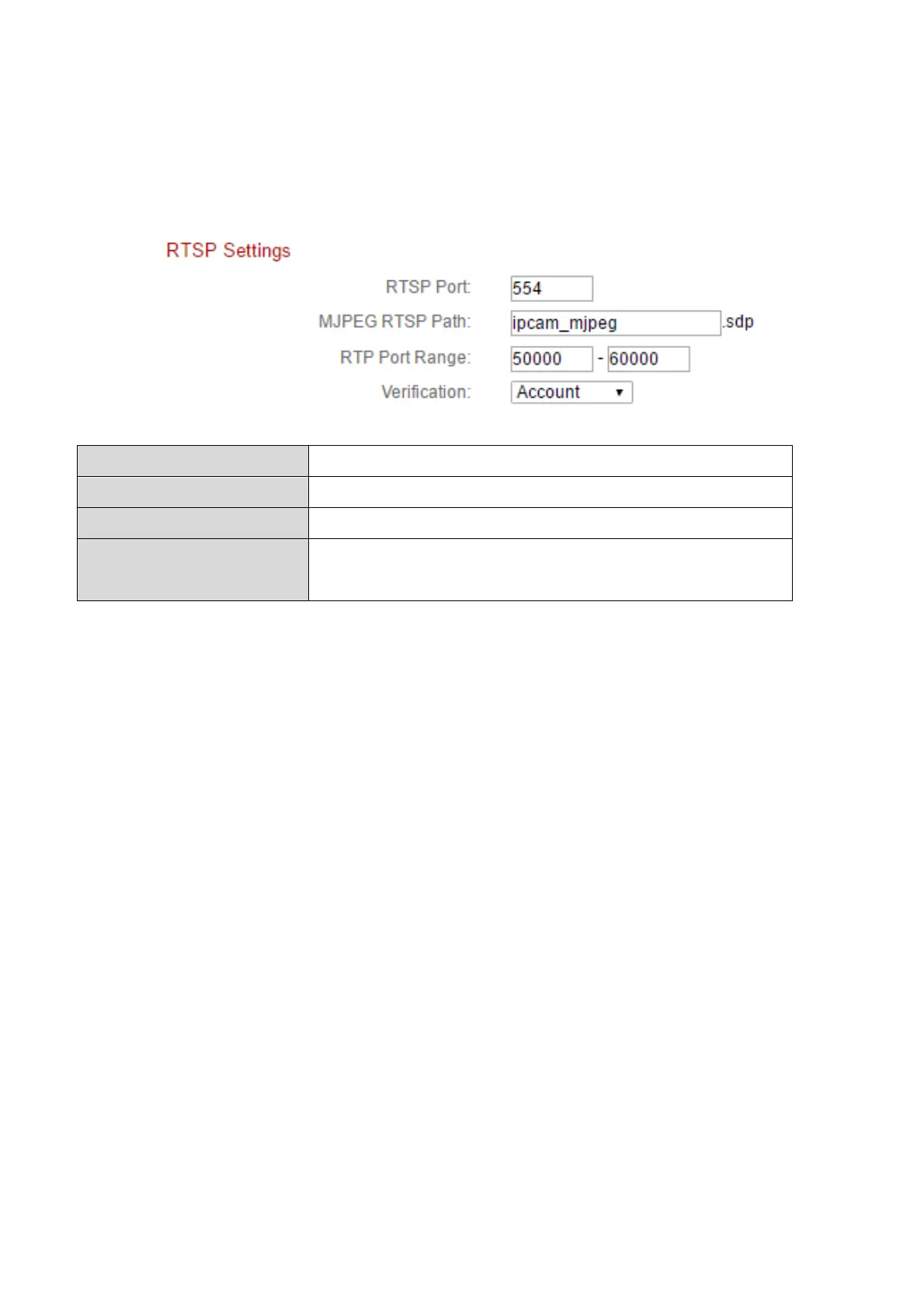 with a streaming media server. Enter the required RTSP settings.