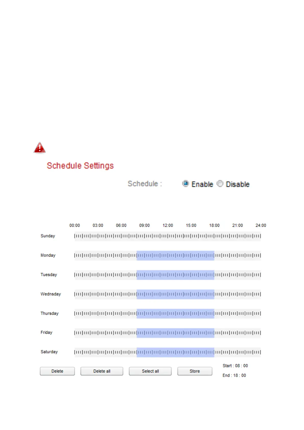 the example below, motion detection is scheduled for 8am – 6pm Monday to