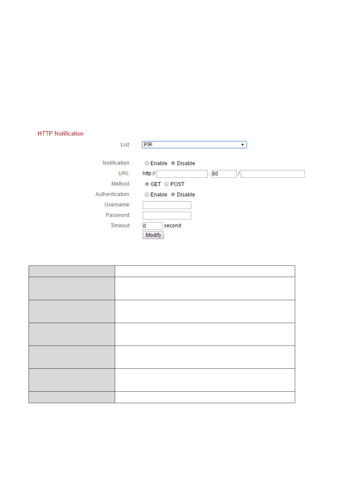 camera’s HTTP notification settings using the menu below. Notifications can