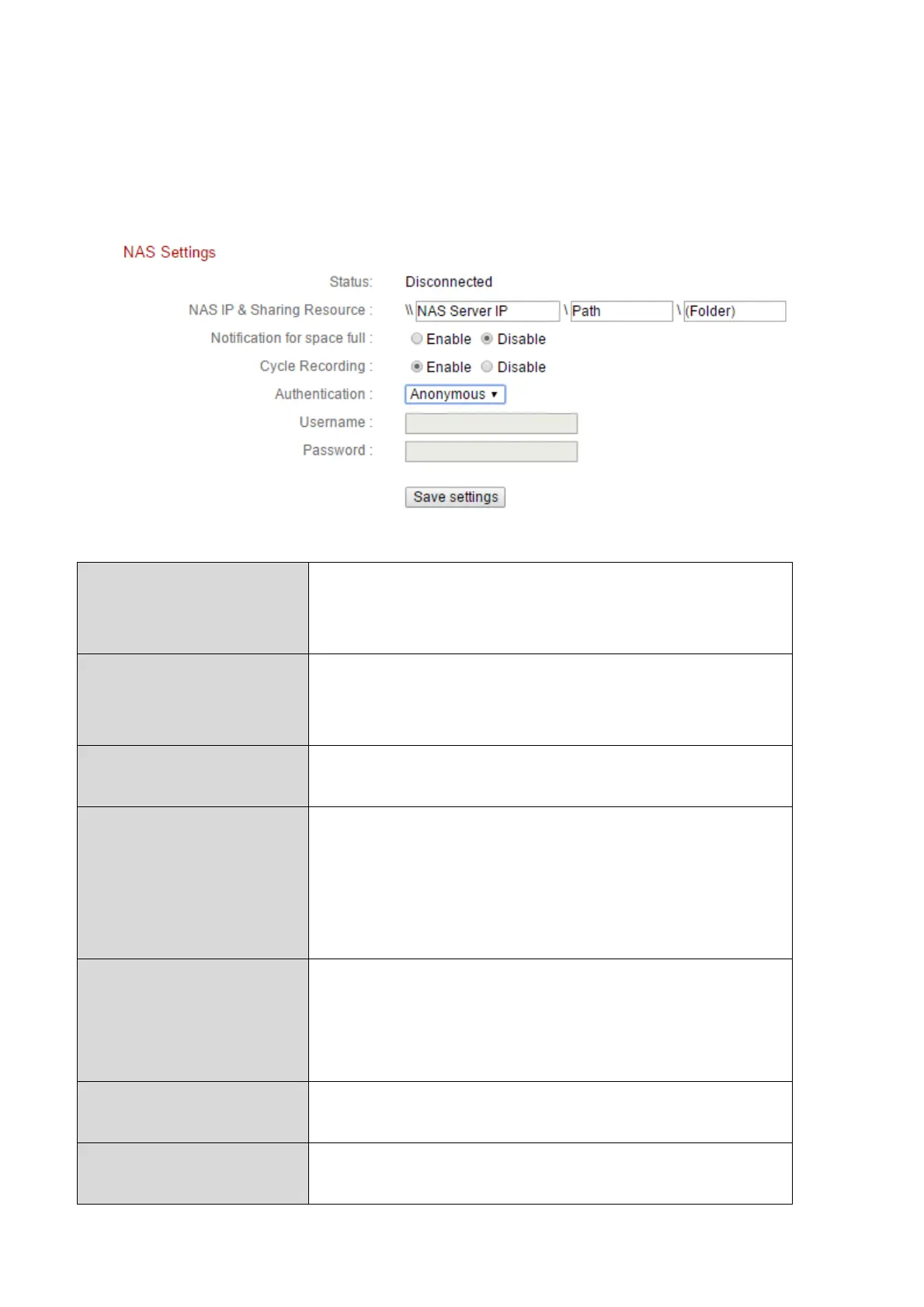 If using a NAS server for local storage, configure the settings on this page