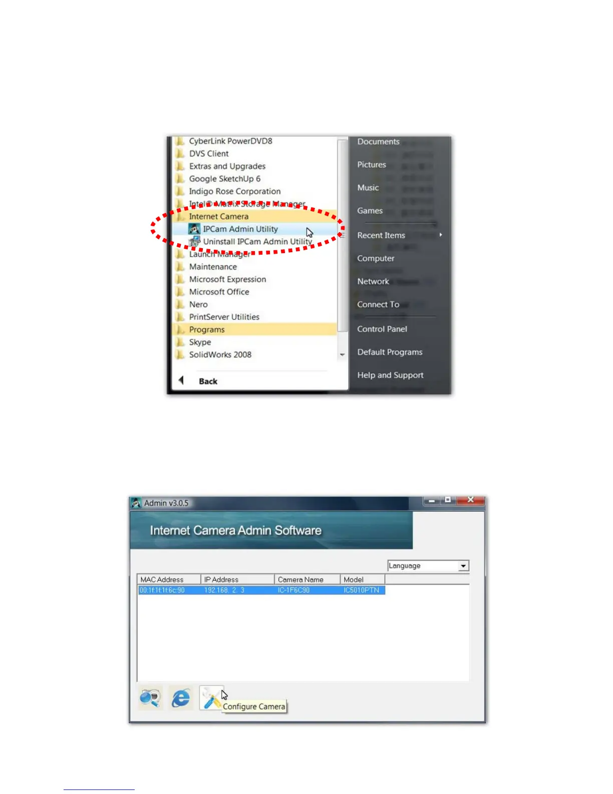 9. A new folder named ‘IP Camera’ in ‘All Programs’ will be created: