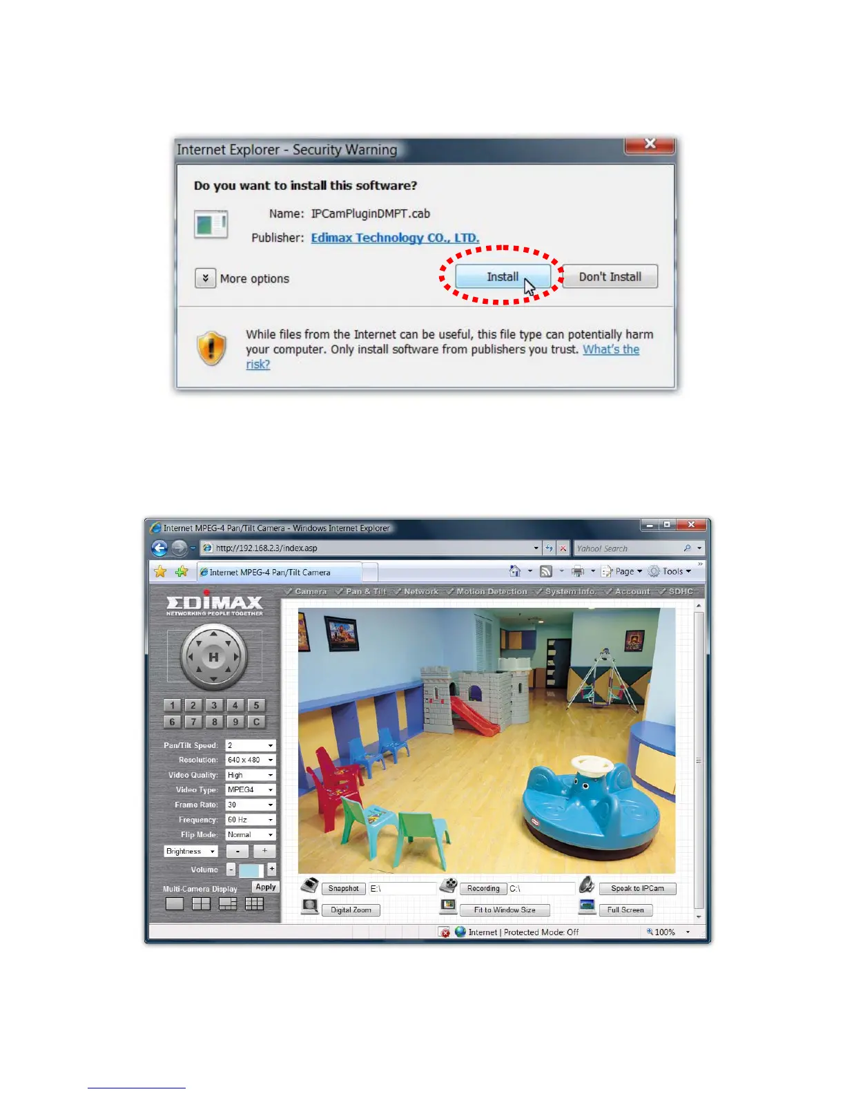 Edimax IC-7000PT - Install ActiveX and View Feed