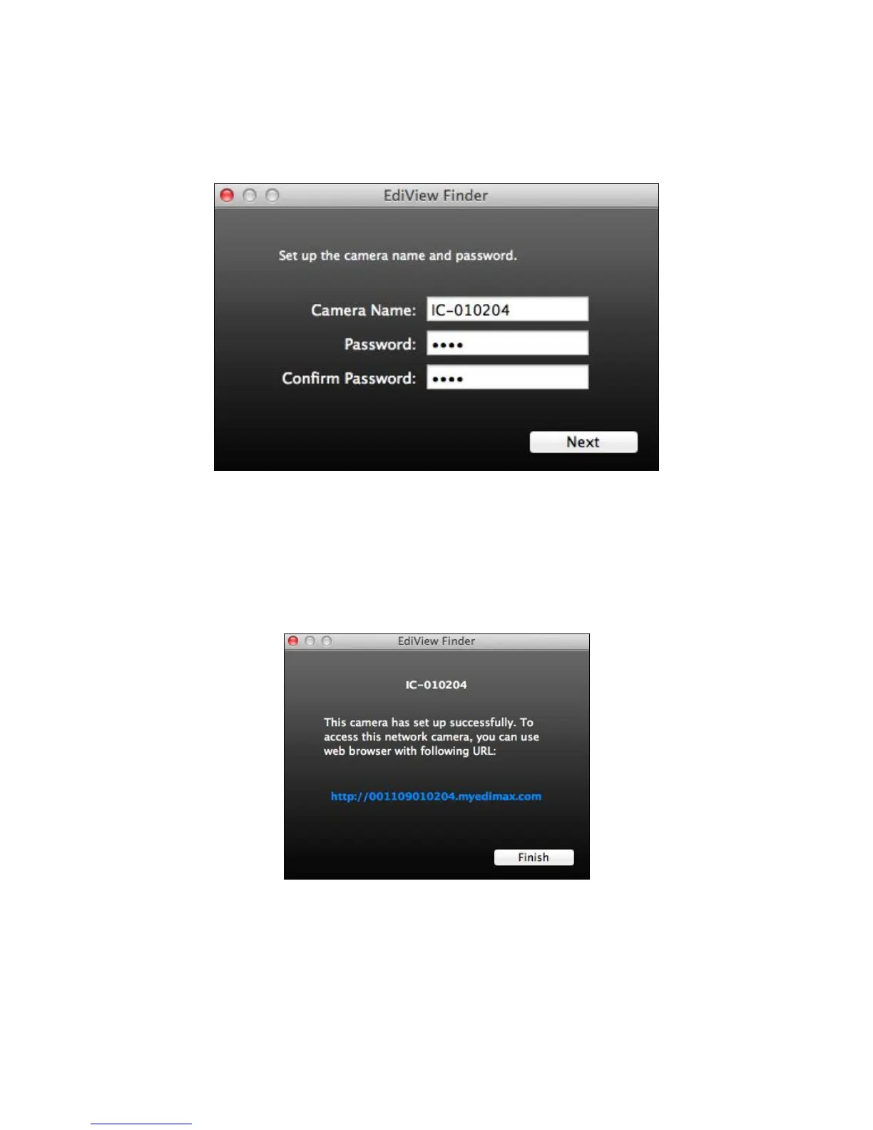 5. Enter a name and password for your camera. The password will be used