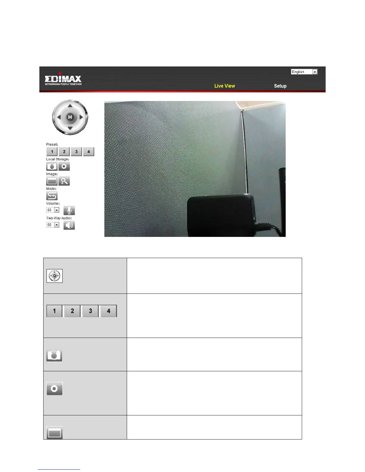 below. On the live view screen you can see a live stream from your camera