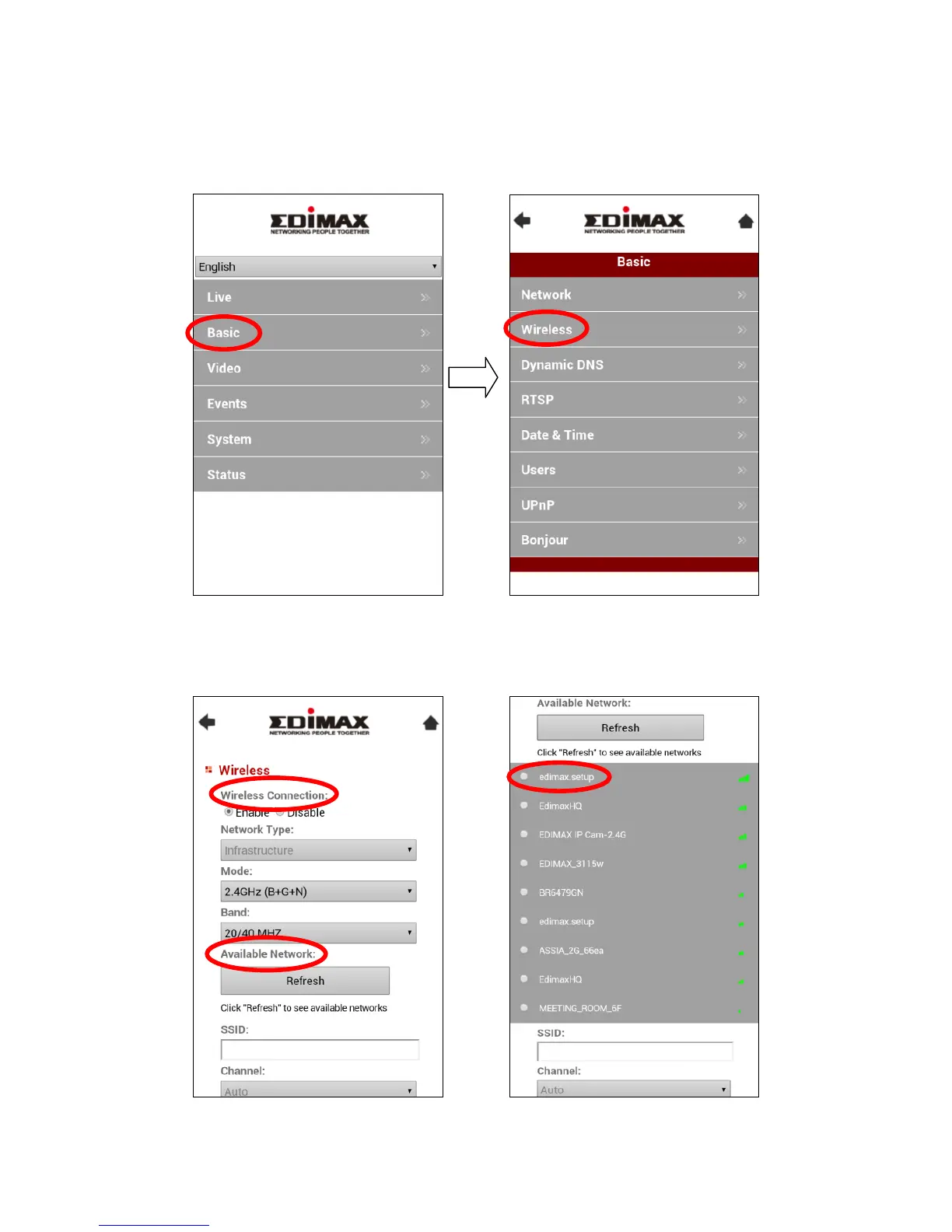 1. Select “Basic” from the menu on the left side and then select “Wireless”.