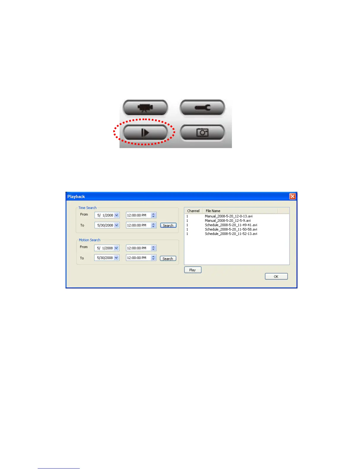 search, and then click „Search‟ button (of „Time Search‟ of „Motion‟ Search‟). All