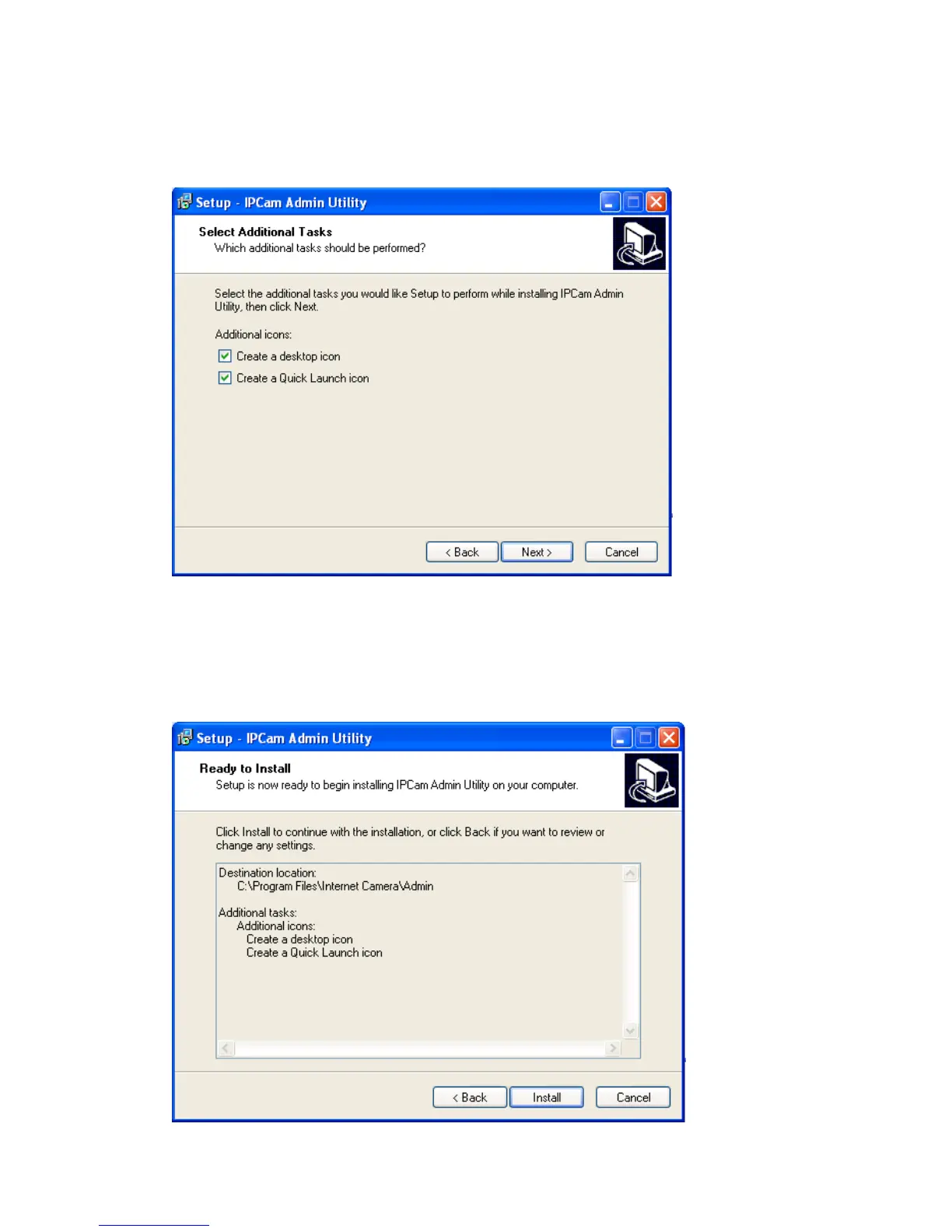 3. If you wish to create desktop icon and / or quick launch icon for camera