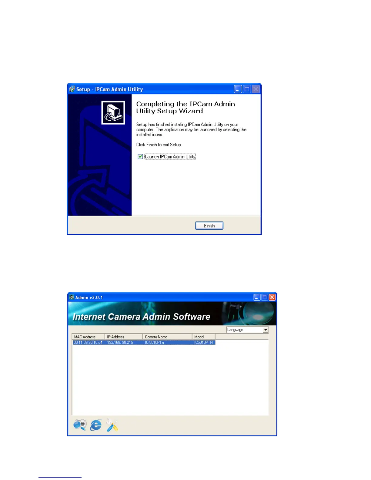 complete. If you wish to launch camera admin software now, keep „Launch IP