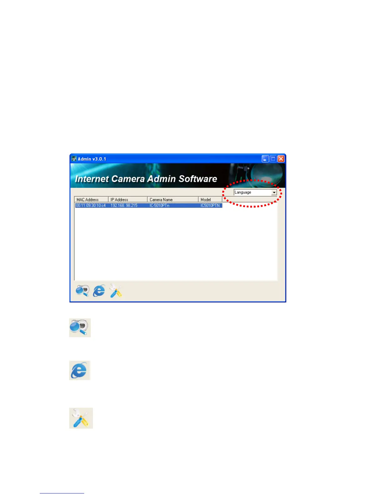 Language change: This camera admin software supports 3 languages: English,