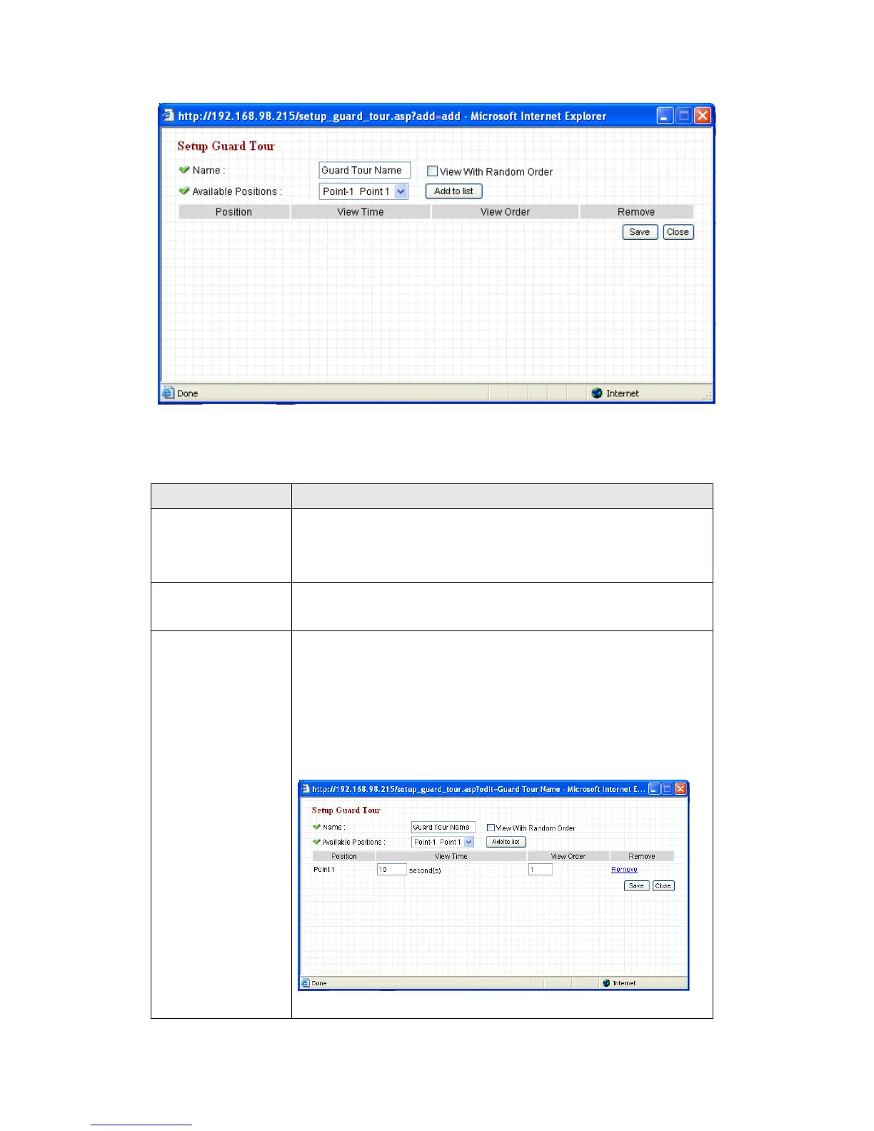 click Add to list to add this position to this guard tour.