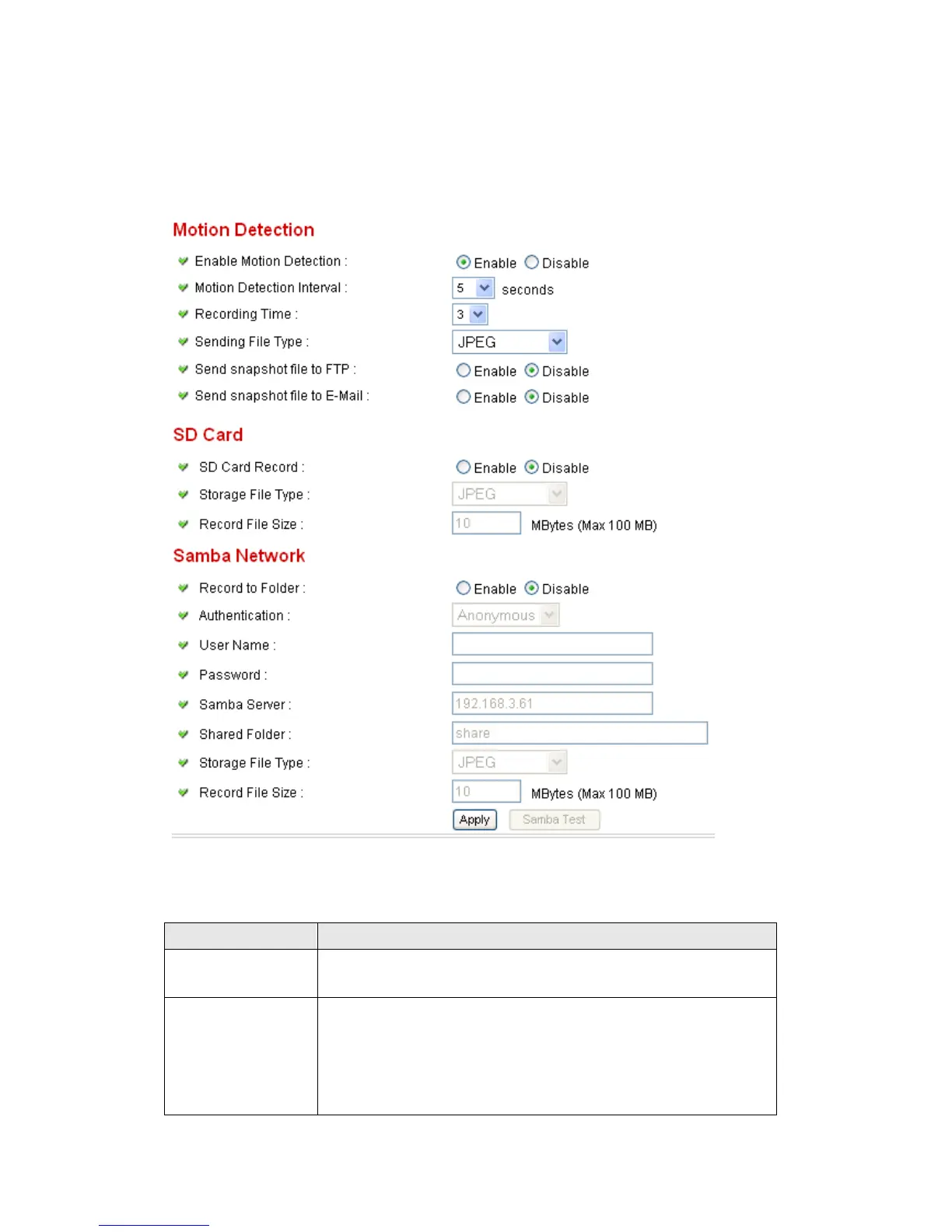 You can use this menu to setup basic motion detection settings:
