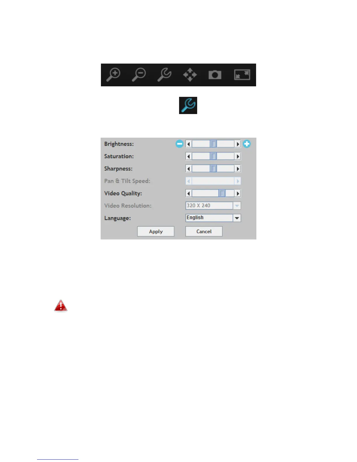 sharpness, video quality and pan & tilt speed. Use the dropdown lists to
