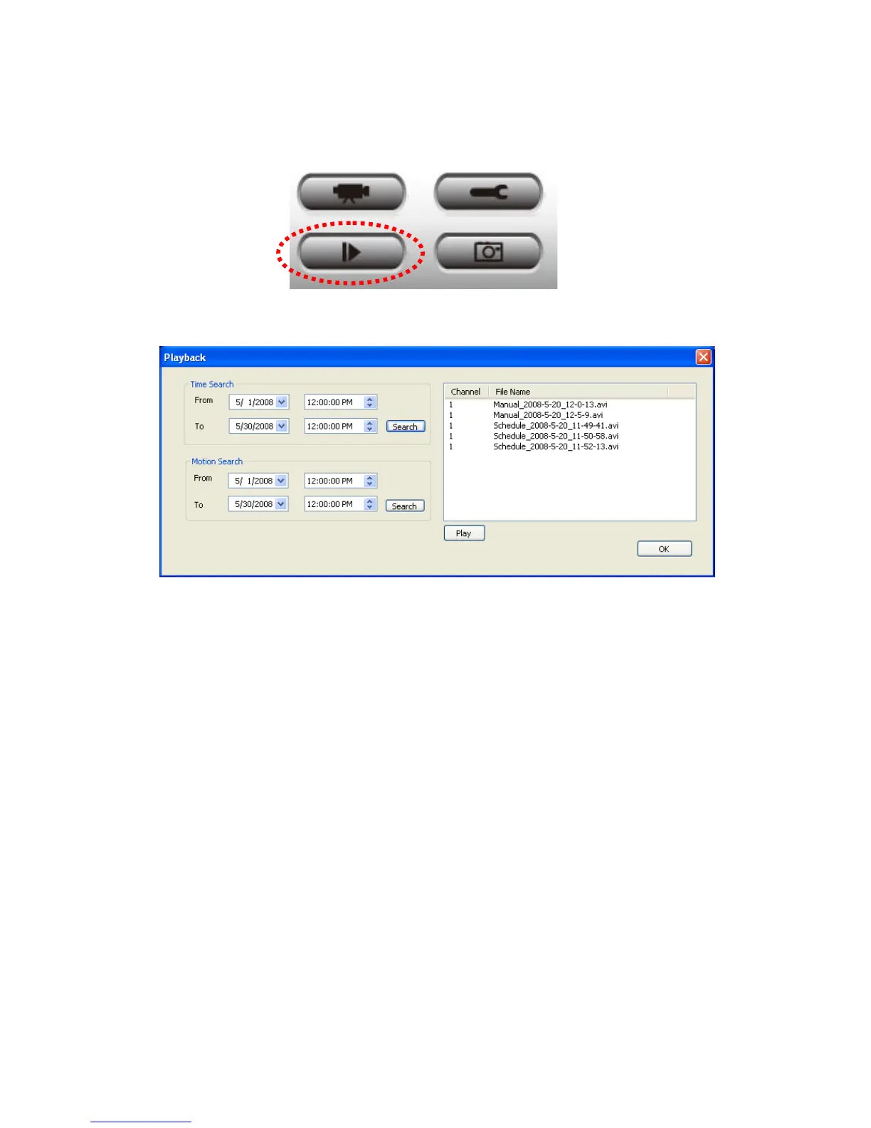 search, and then click ‘Search’ button (of ‘Time Search’ of ‘Motion’ Search’). All