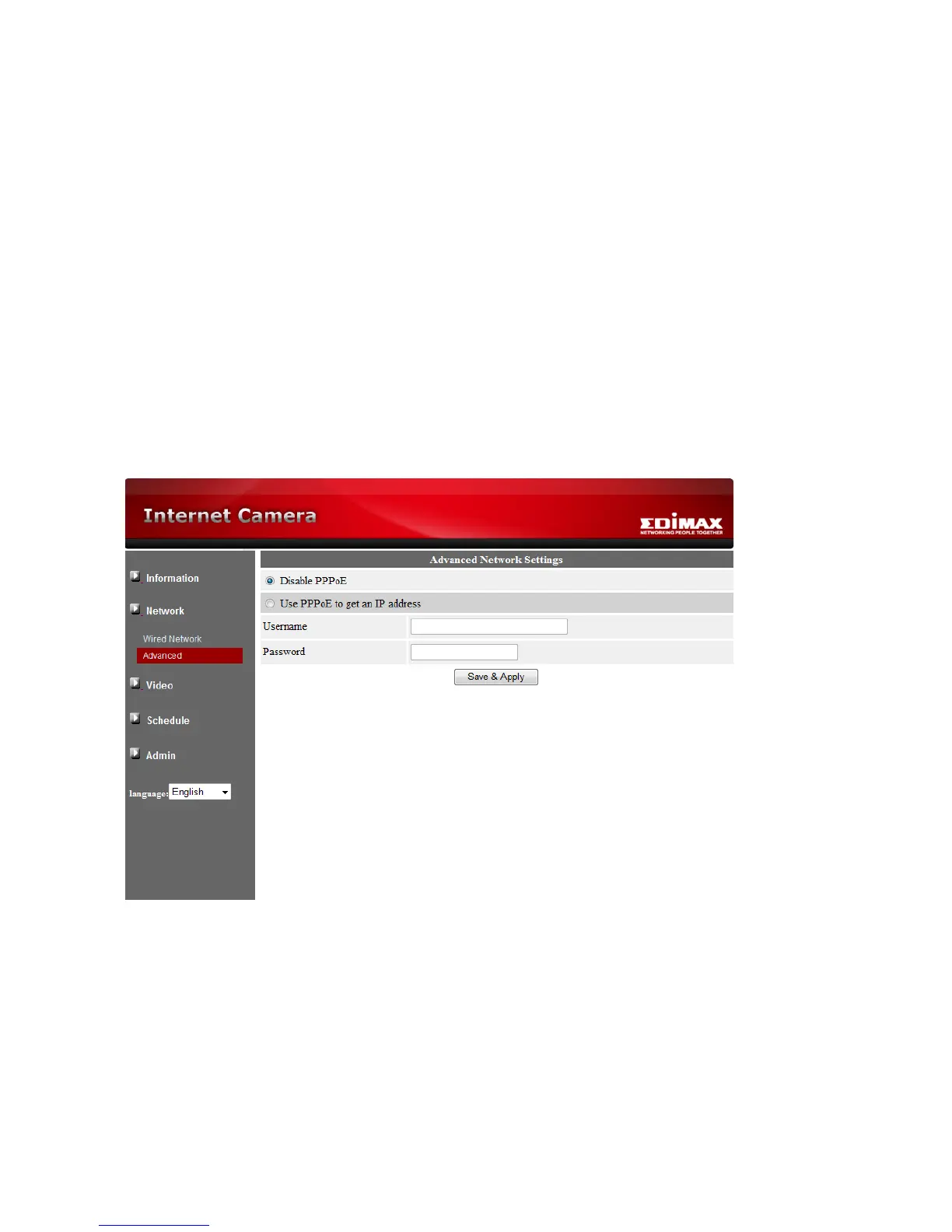 settings in the “Advanced Network”20page. Only the PPPoE username and password are