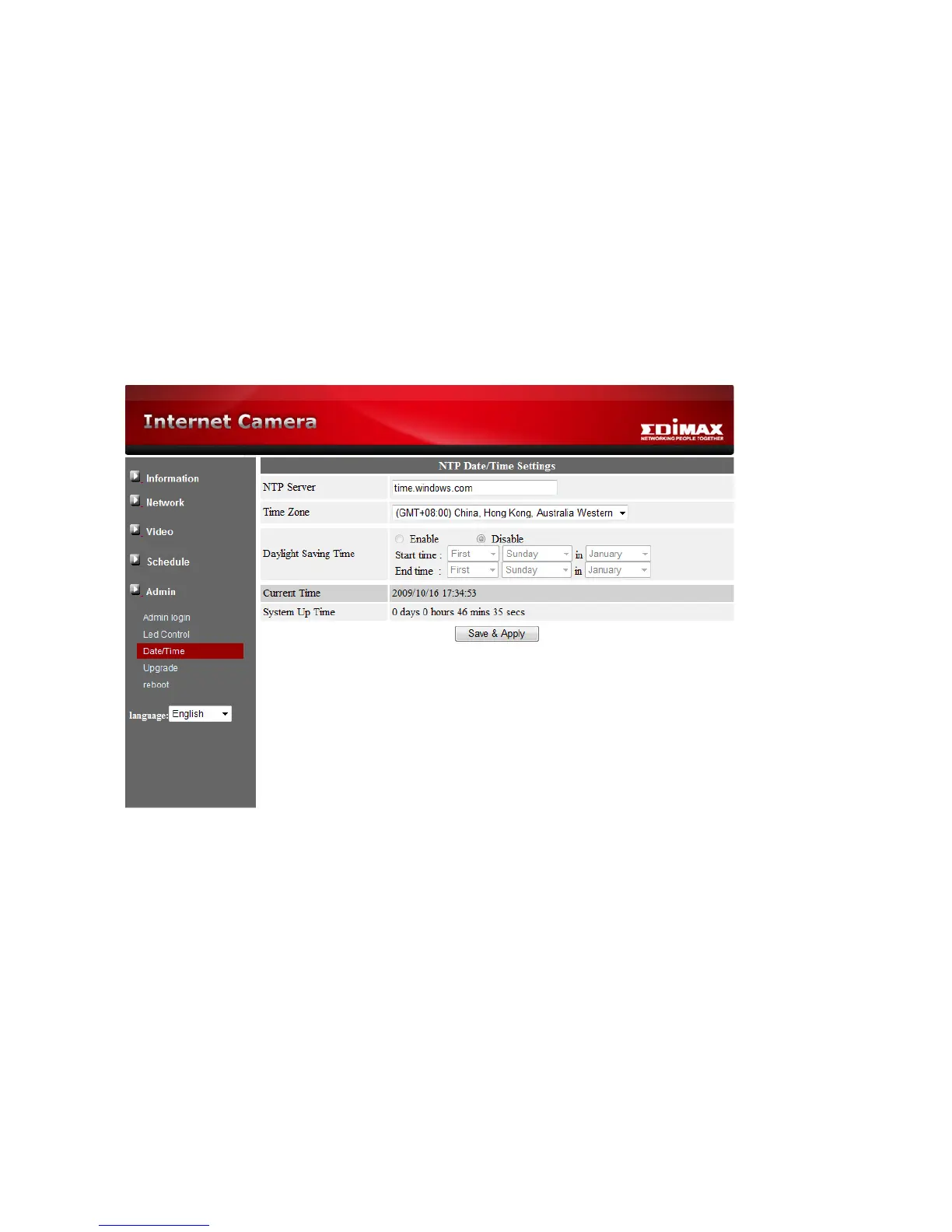 The IP CAM can synchronize the date/time with the universally available time server (for