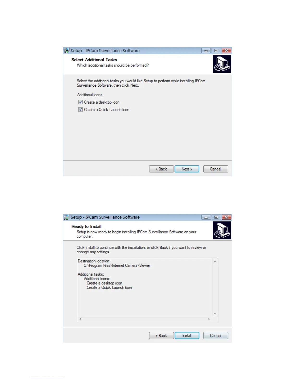 3. If you need installation program to create a desktop icon or a quick launch icon for you,