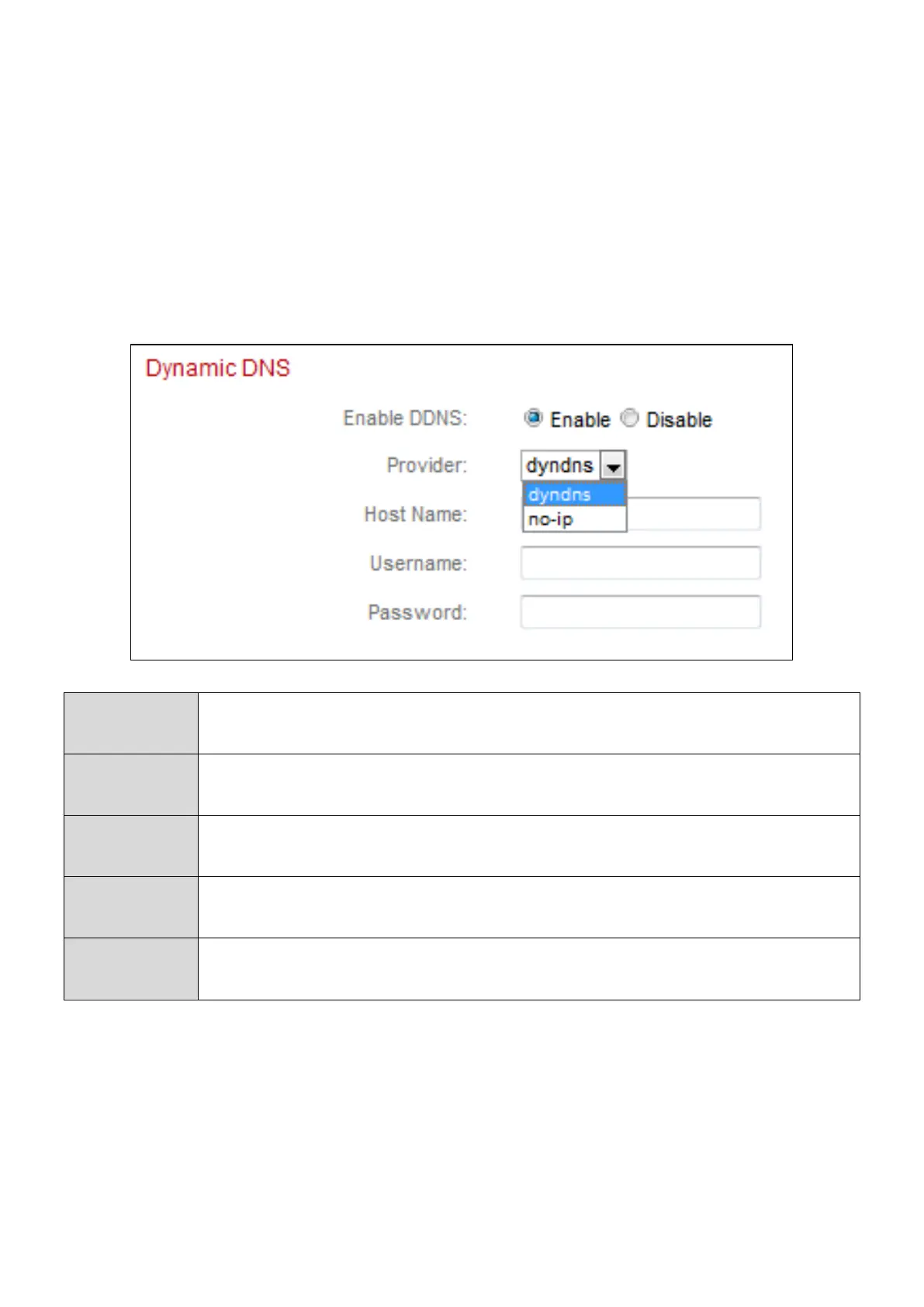 Select “Enable” to enable DDNS functionality, or select “Disable”